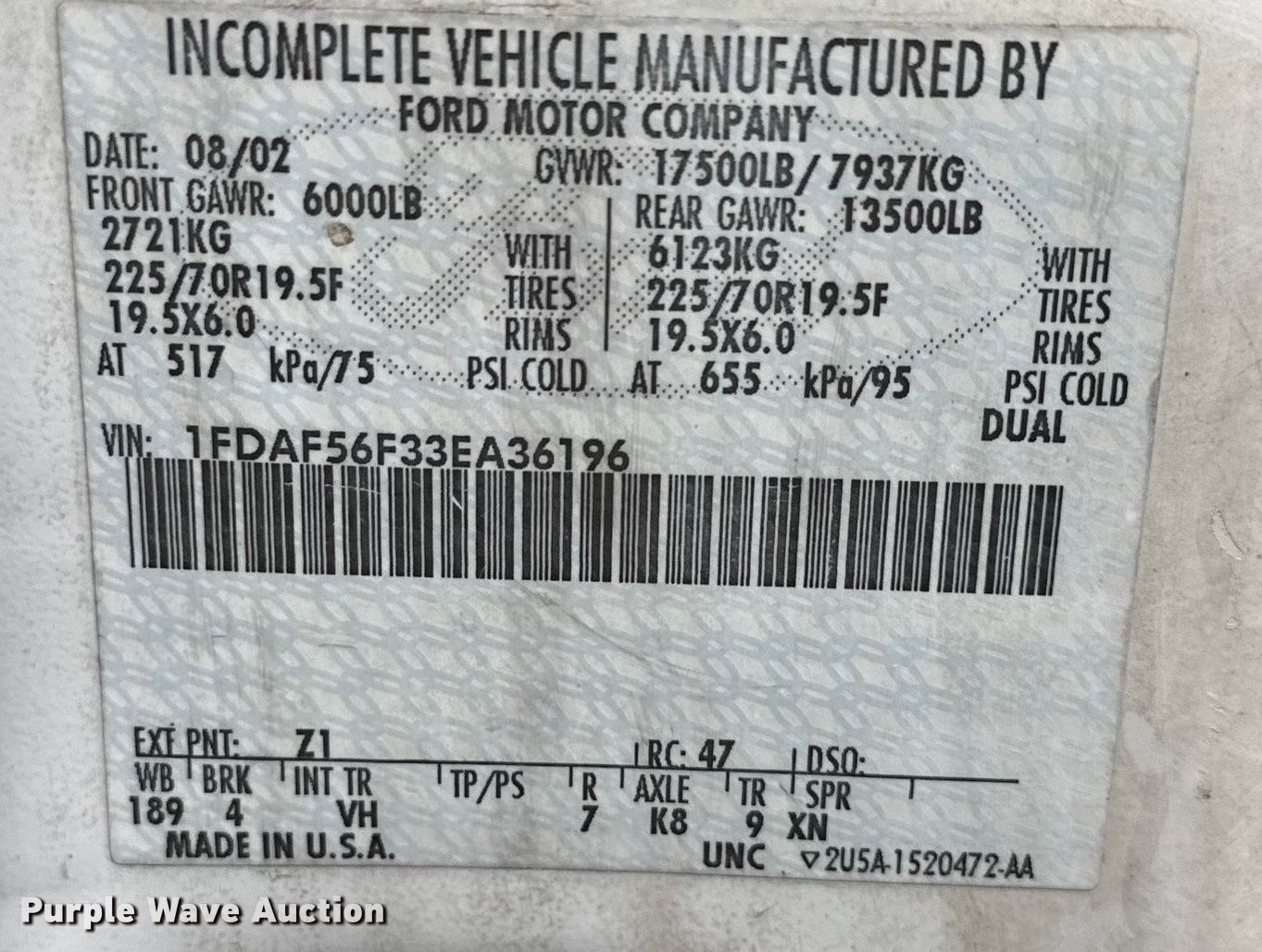 - VIN: 1FDAF56F33EA36196