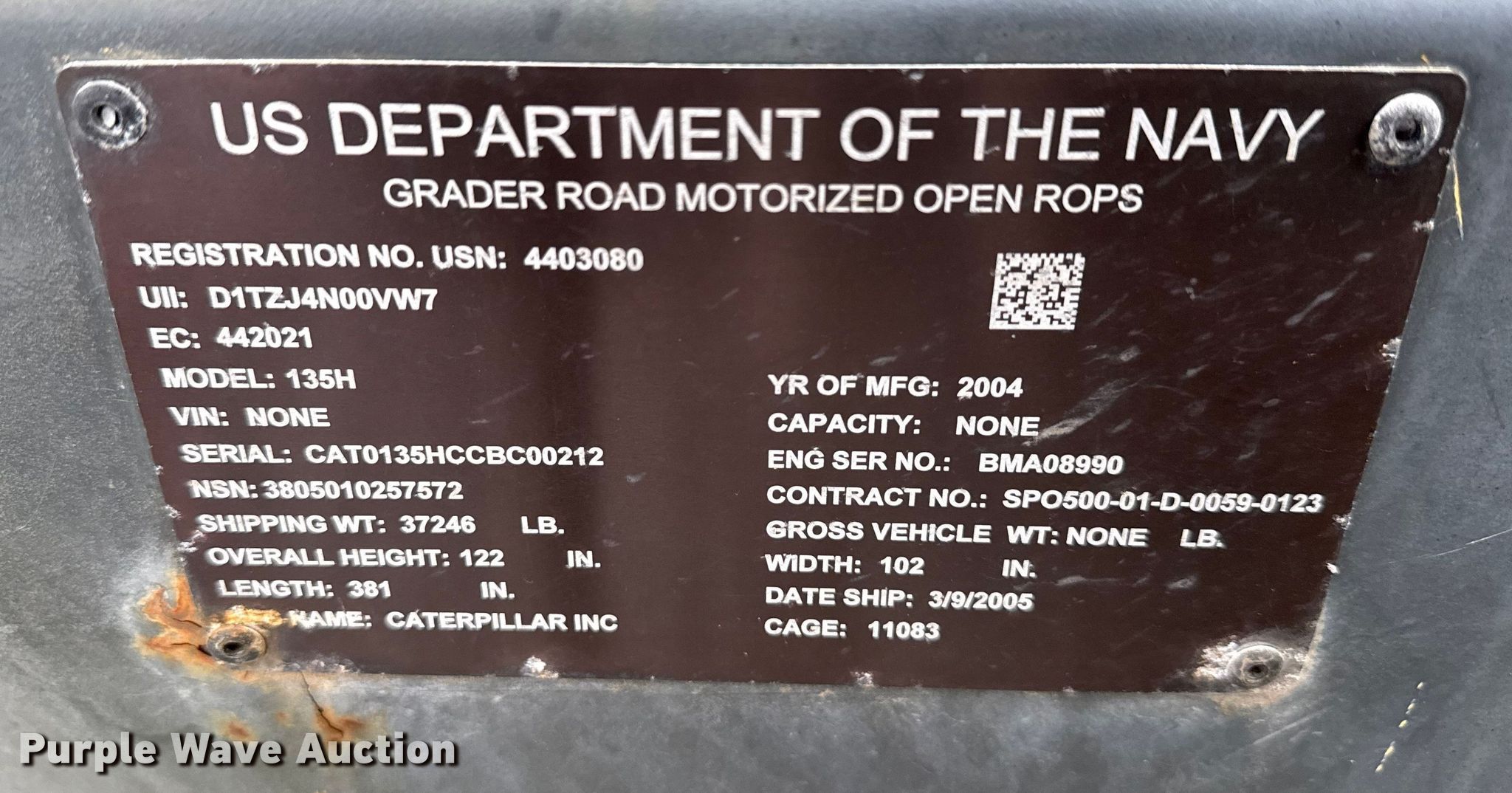 Take a look at this used 2004 Caterpillar 135H motor grader being sold on December 31st, 2025 in the Wednesday December 31 Construction Equipment Auction made by Caterpillar. Take a look at all of the item information below or take a look at similar auctions for Graders.