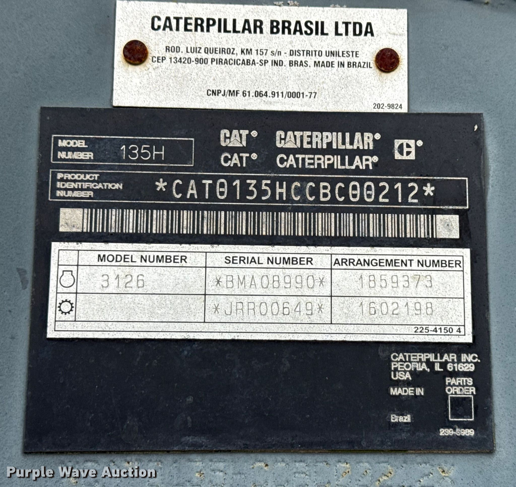 Purple Wave is selling a used Motor Grader in Kentucky. This item is a 2004 Caterpillar 135H motor grader with the following: Hours: 7,837 on meter, Serial: CAT0135HCCBC00212