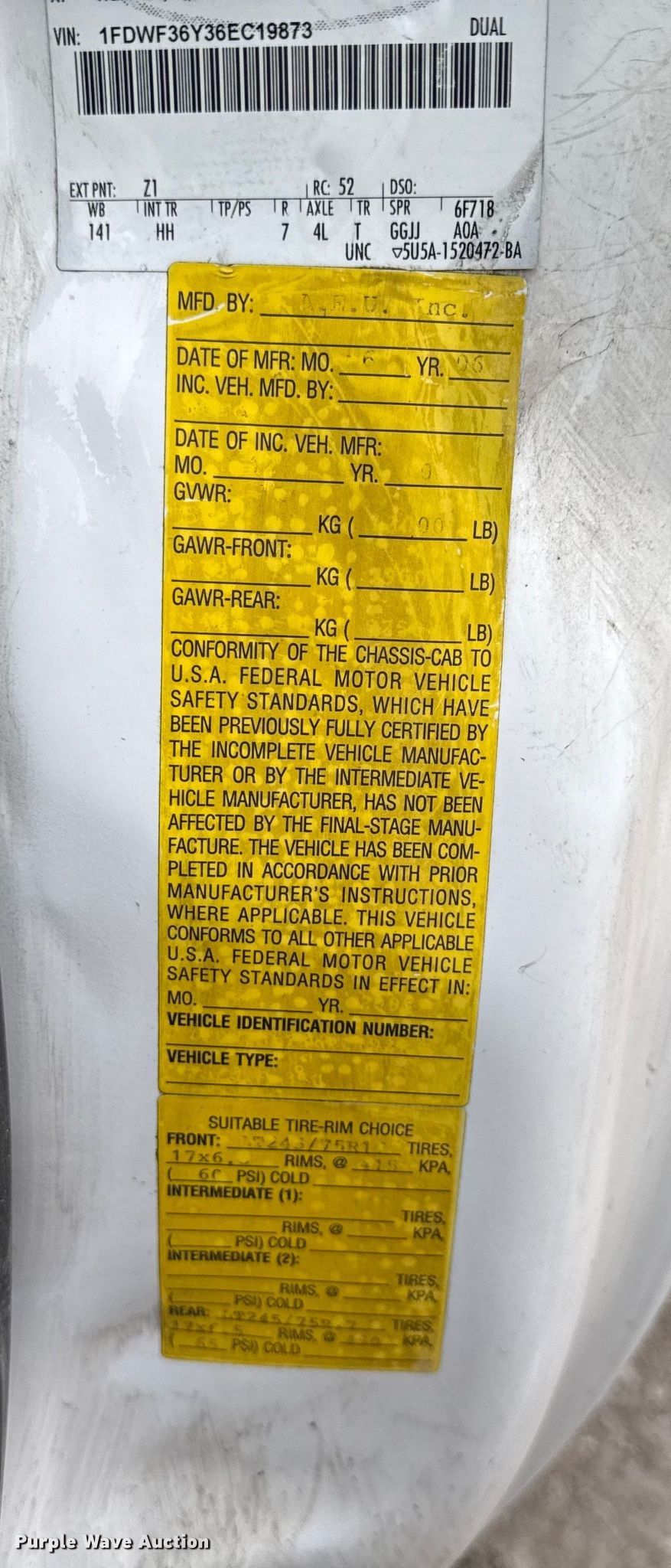 - VIN: 1FDWF36Y36EC19873
