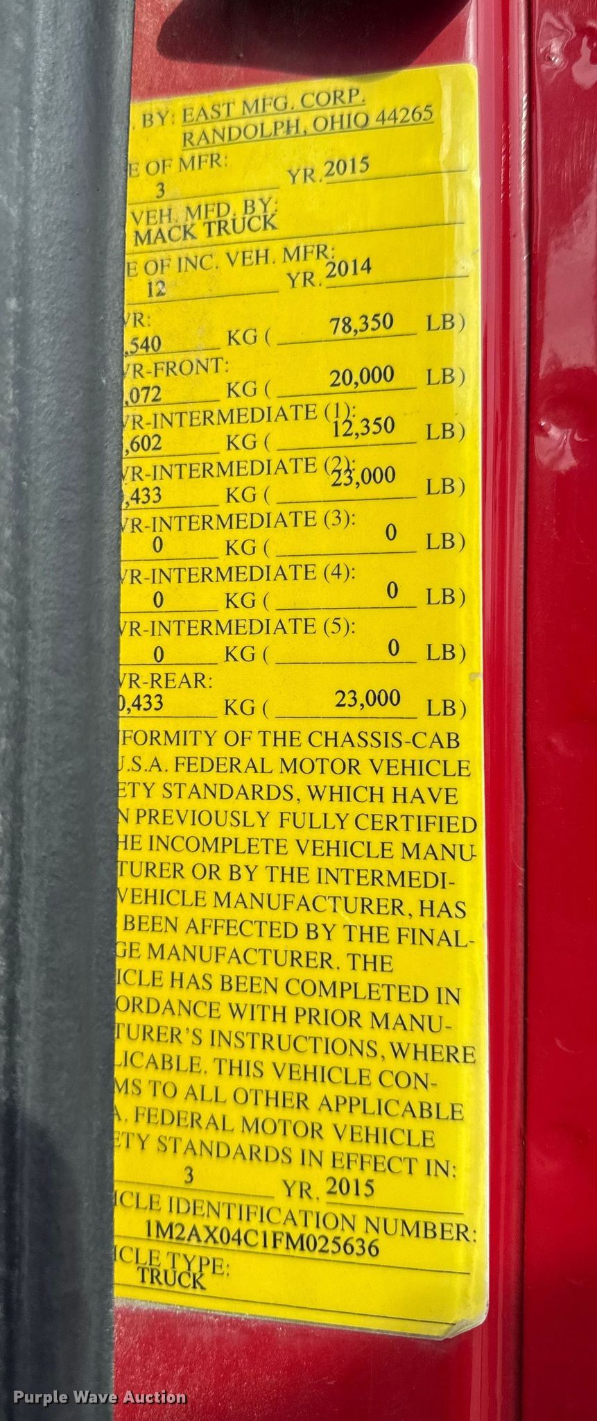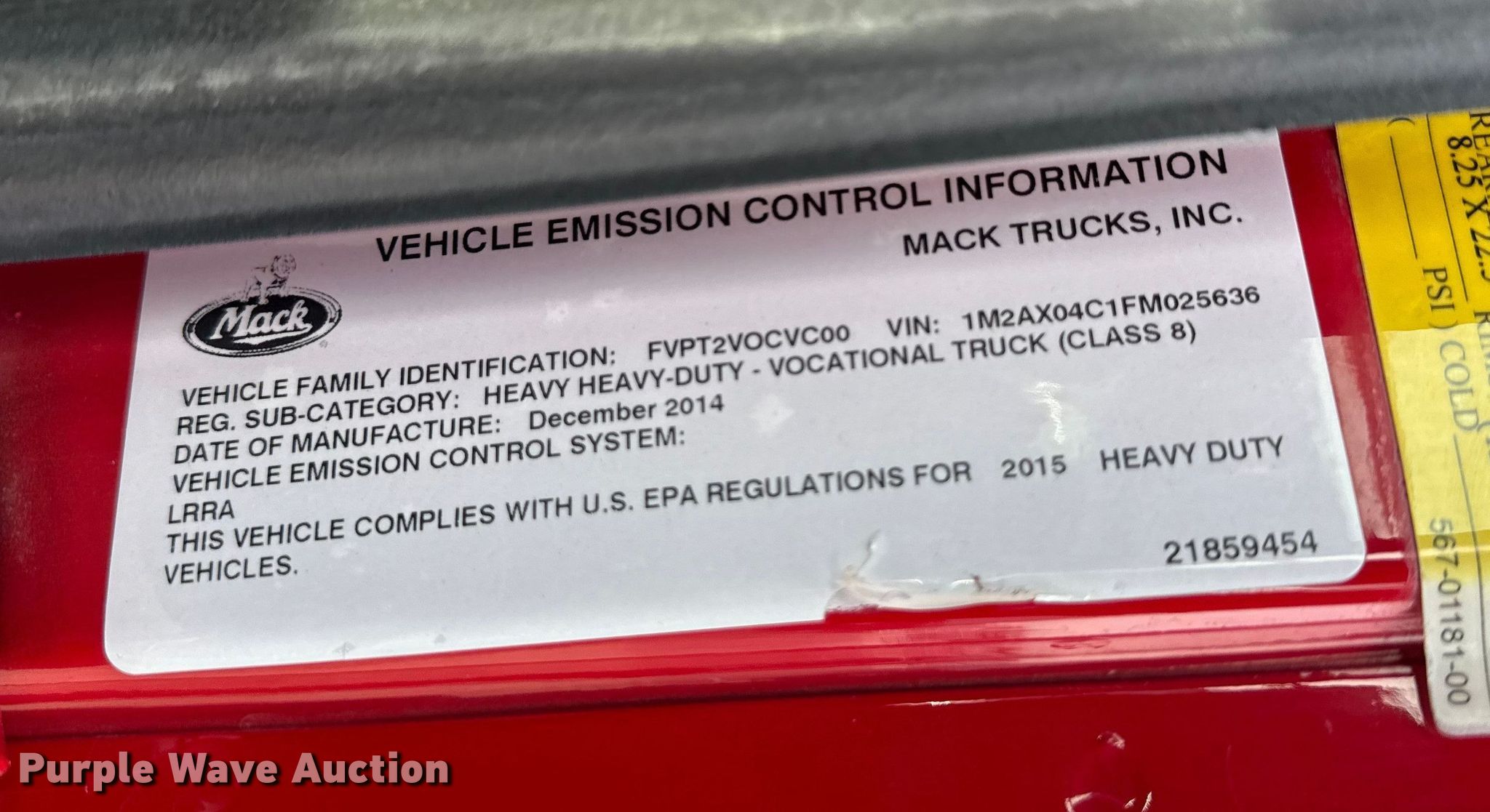 Take a look at this used 2015 Mack GU713 dump truck being sold on December 31st, 2025 in the Wednesday December 31 Construction Equipment Auction made by Mack. Take a look at all of the item information below or take a look at similar auctions for Construction Trucks.