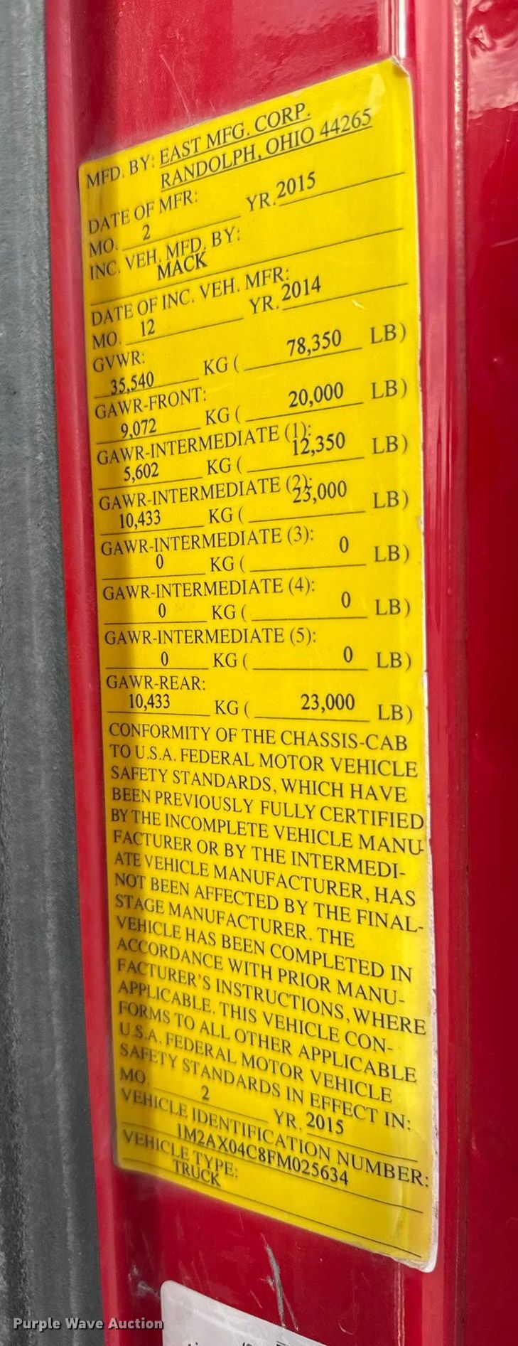 Take a look at this used 2015 Mack GU713 dump truck being sold on December 31st, 2025 in the Wednesday December 31 Construction Equipment Auction made by Mack. Take a look at all of the item information below or take a look at similar auctions for Construction Trucks.