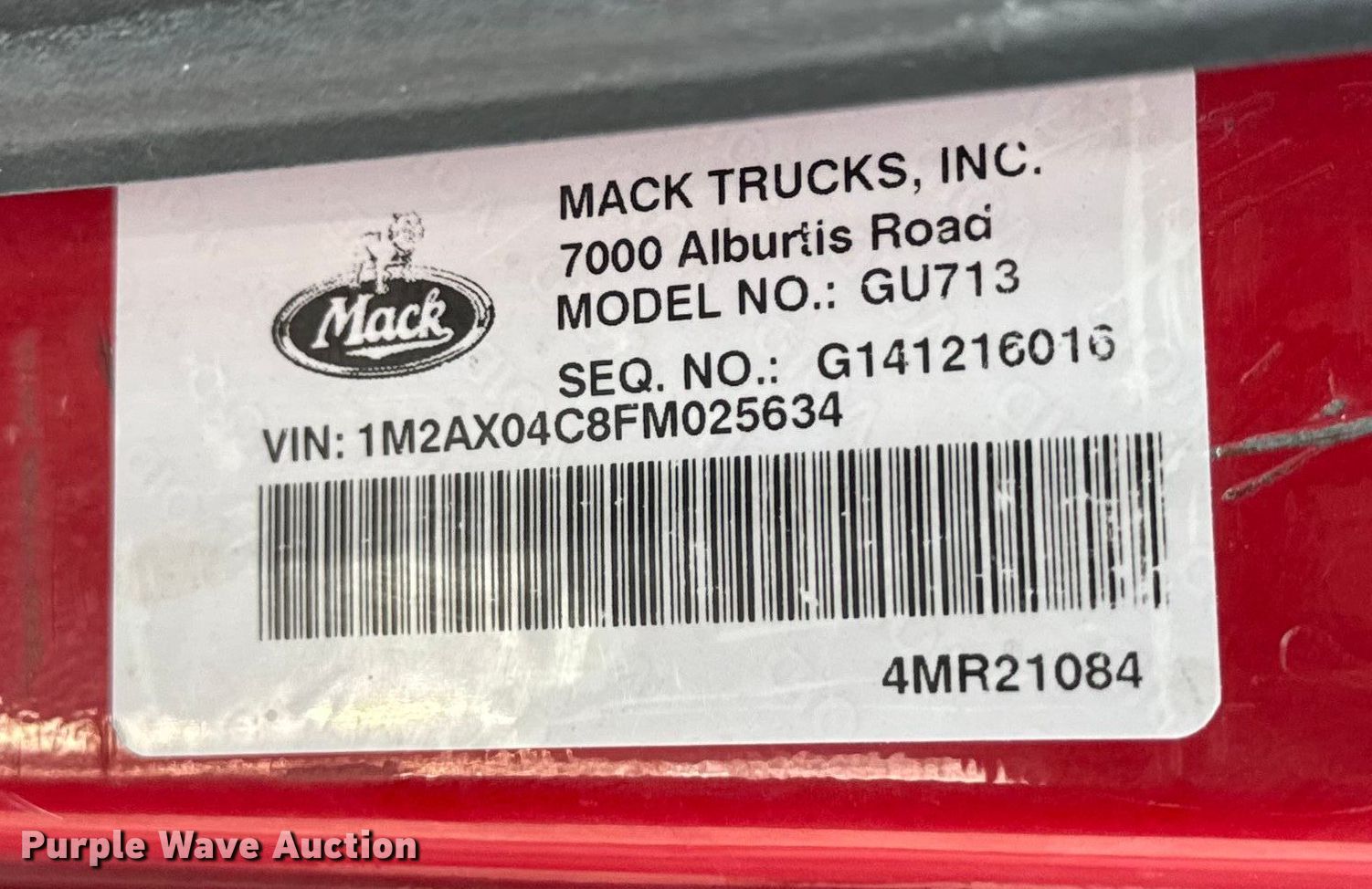 2015 Mack GU713 dump truck | Wednesday December 31 Construction Equipment Auction