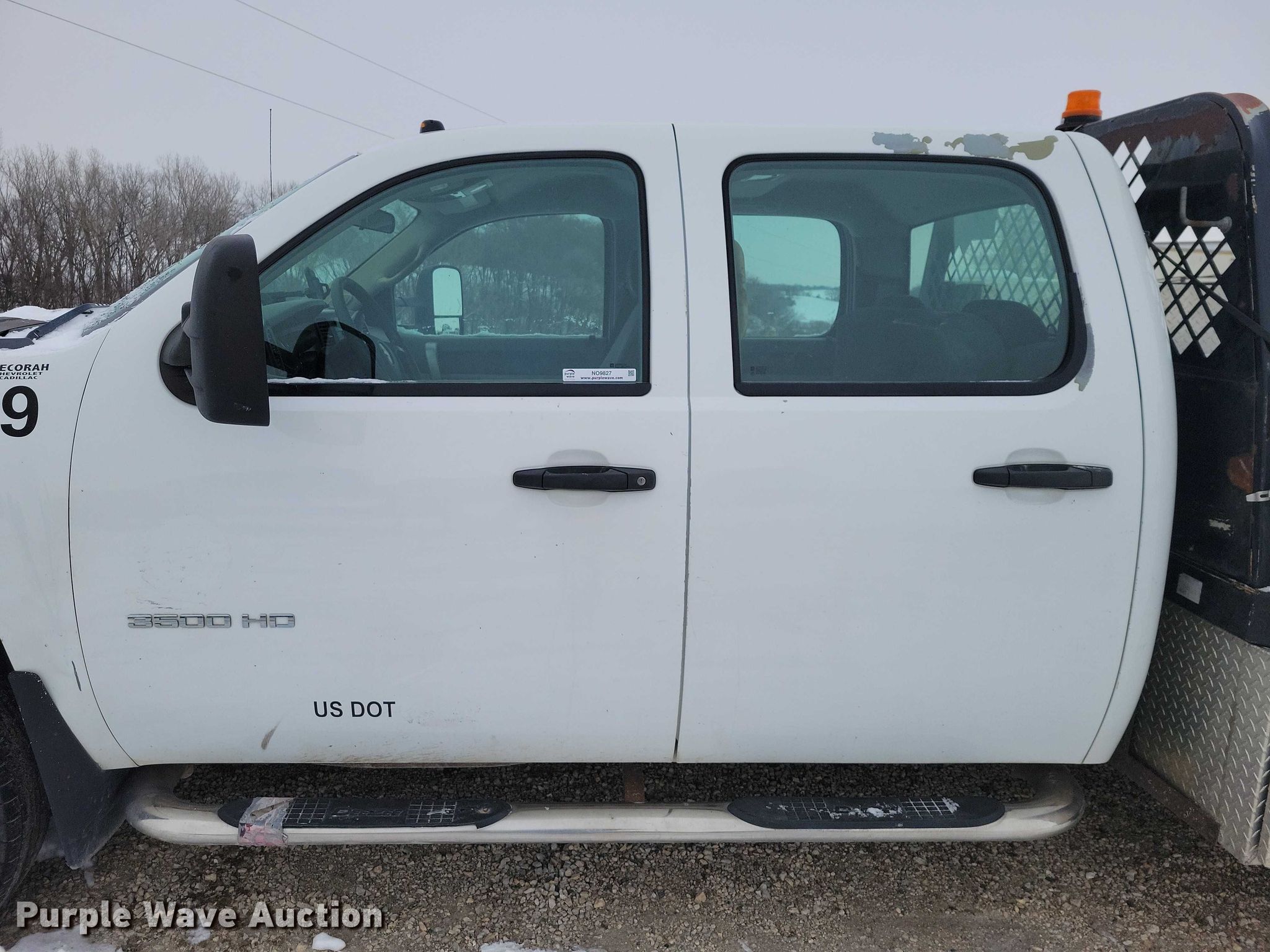 2013 Chevrolet 3500HD Silverado Crew Cab flatbed truck has sold in Decorah, Iowa for $3850. Item NO9827 sold on December 31st, 2025.