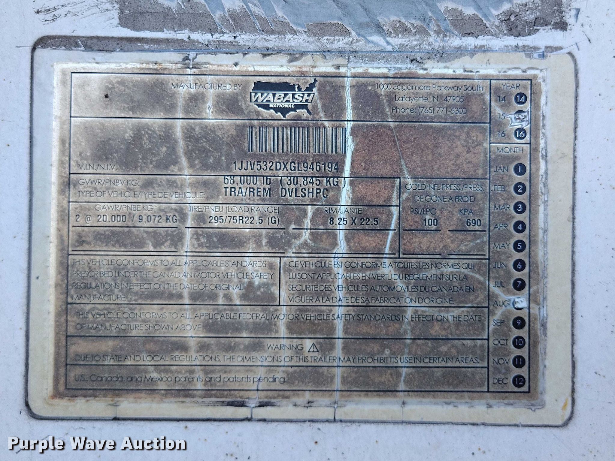 Purple Wave is selling a used Dry Van Trailer in Colorado. This item is a 2016 Wabash DVLSHPC dry van trailer with the following: VIN: 1JJV532DXGL946194