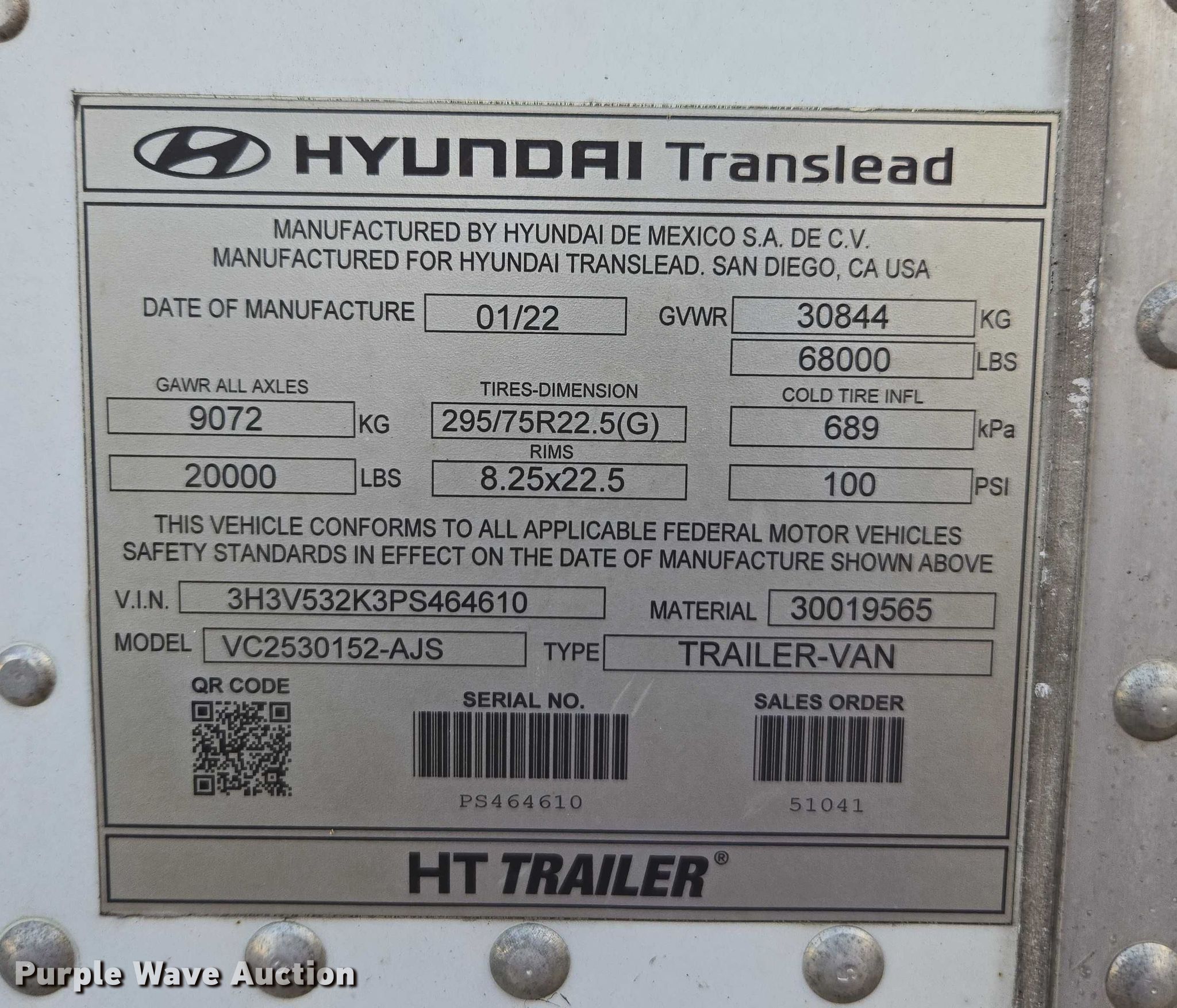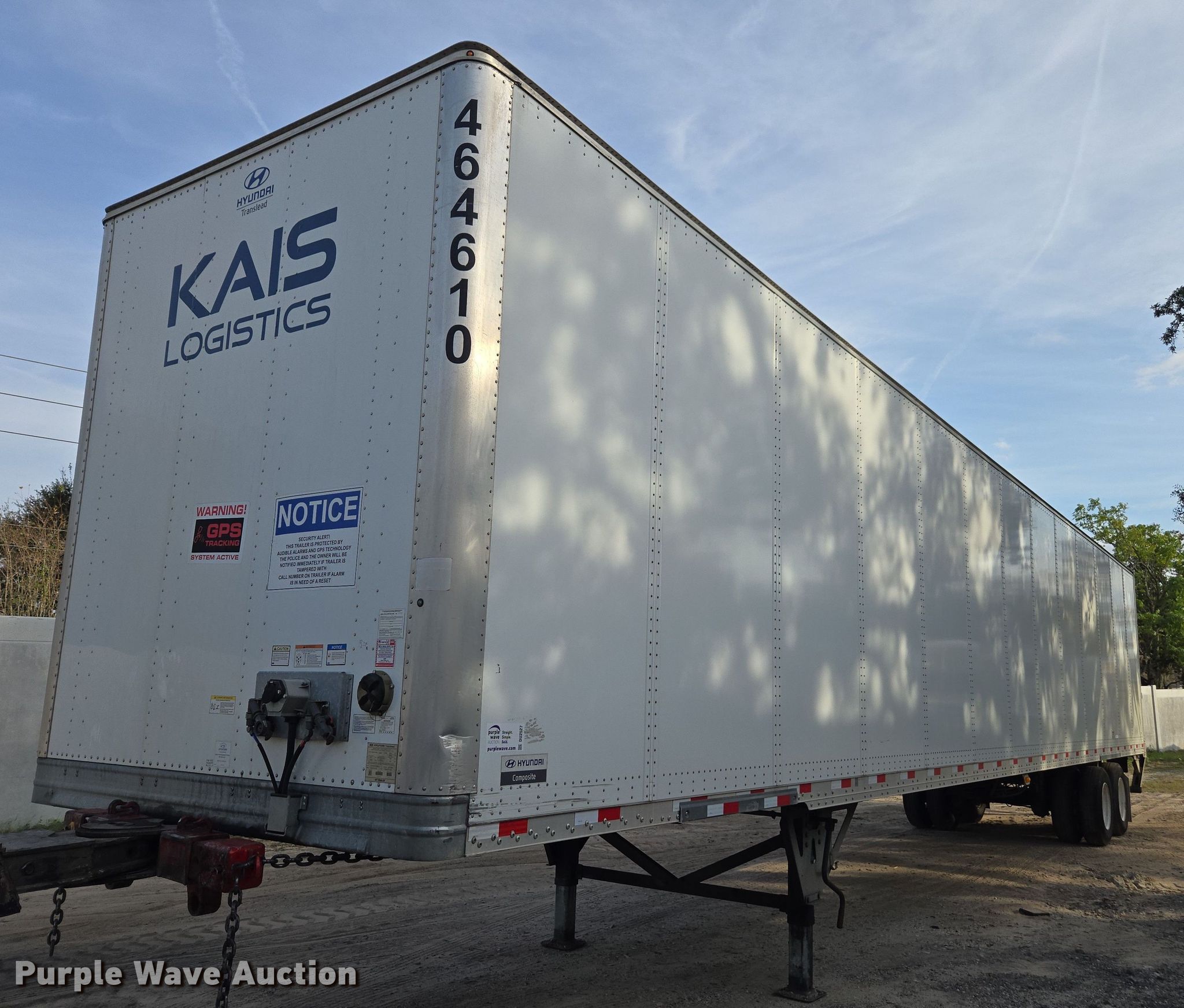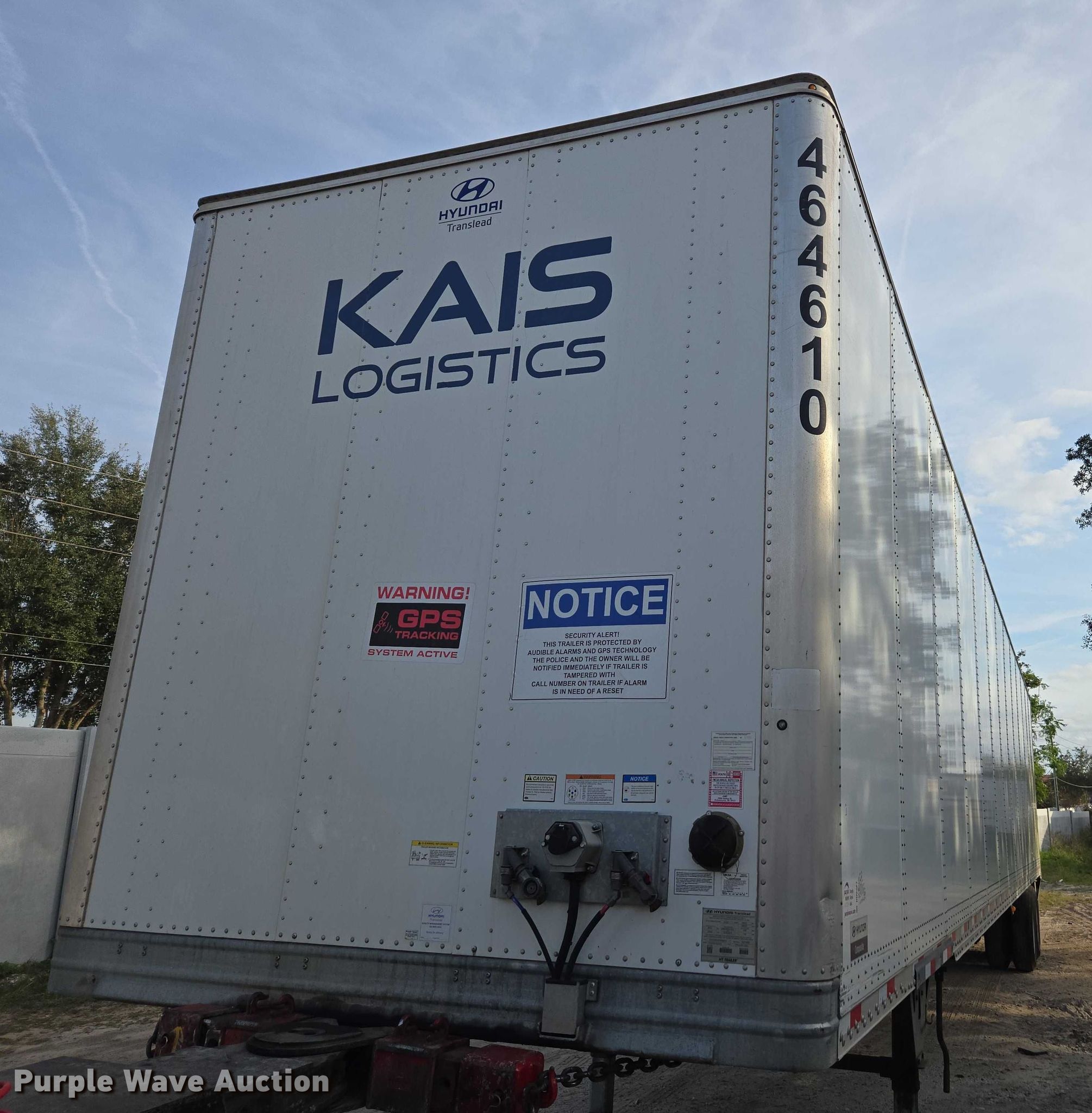 Purple Wave is selling a used Dry Van Trailer in Florida. This item is a 2023 Hyundai dry van trailer with the following: VIN: 3H3V532K3PS464610