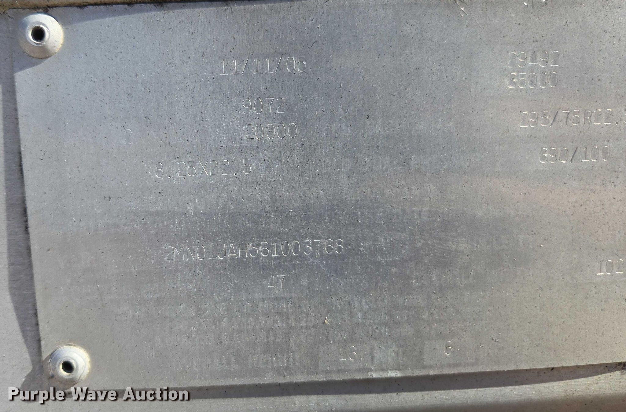 2006 Mond Industries dry van trailer. VIN: 2MN01JAH561003768. Dimensions Overall Length: 53', Width: 102". Features Deck type: Wood. Chassis Landing gear: Dual, Suspension: Spring, Brakes: Air, Axles: Tandem Sliding, GVWR: 65,000 lbs. Tires Steel wheels, Size: 295/75R22.5. Florida title. Title distribution may be delayed up to 14 days from verification of funds. Webb's Towing. Haines City, FL 33844