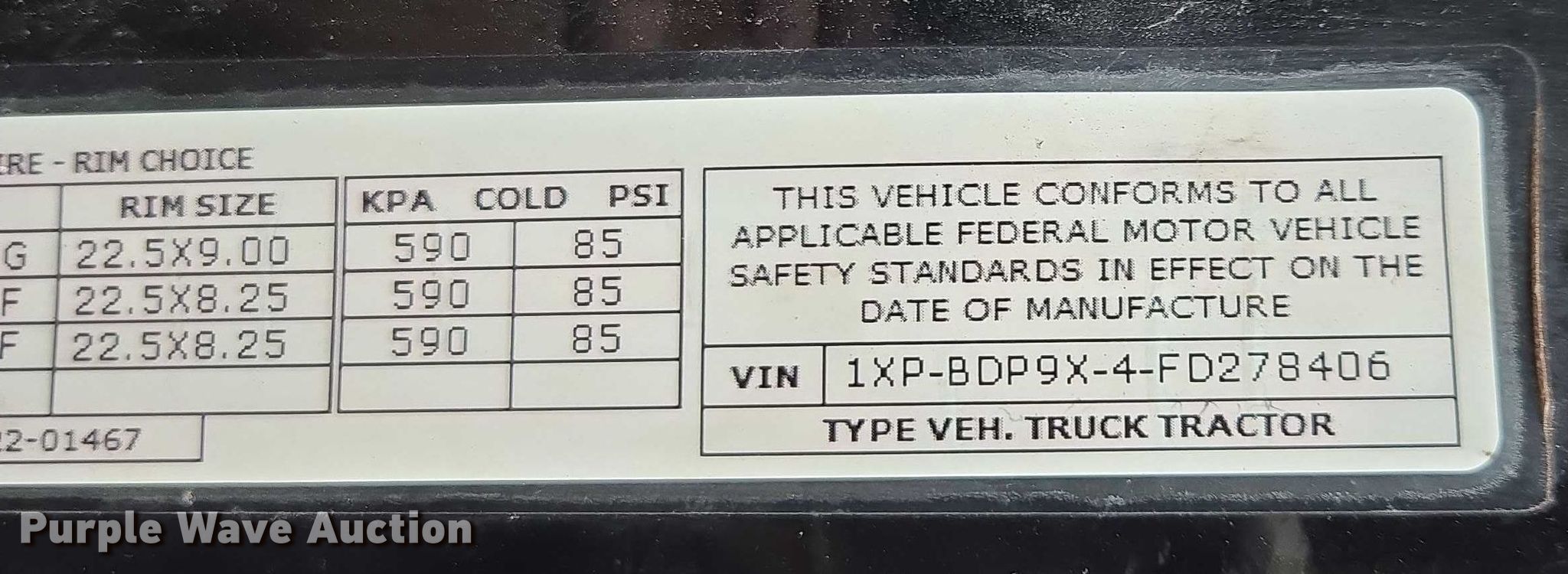 - VIN: 1XPBDP9X4FD278406