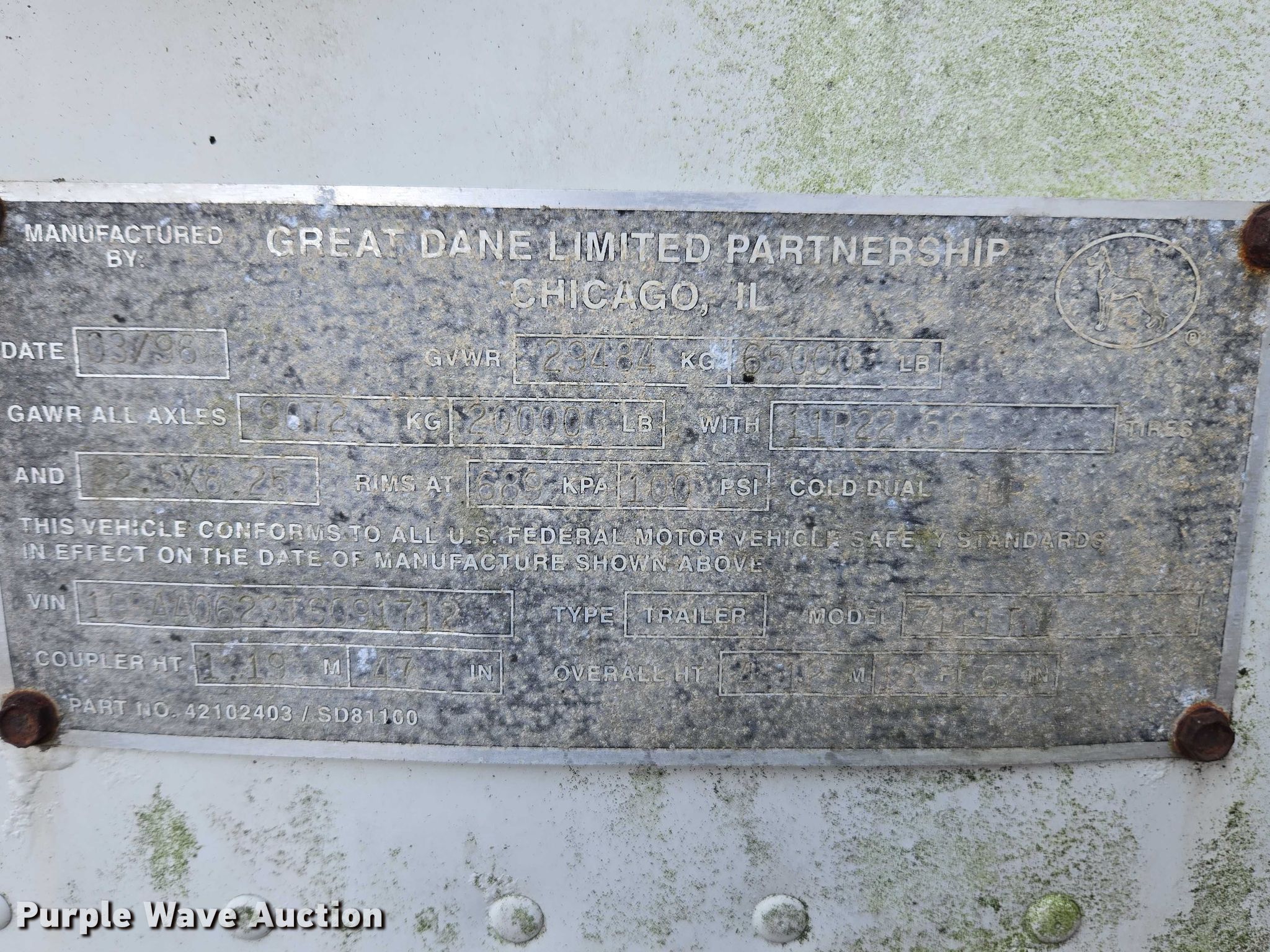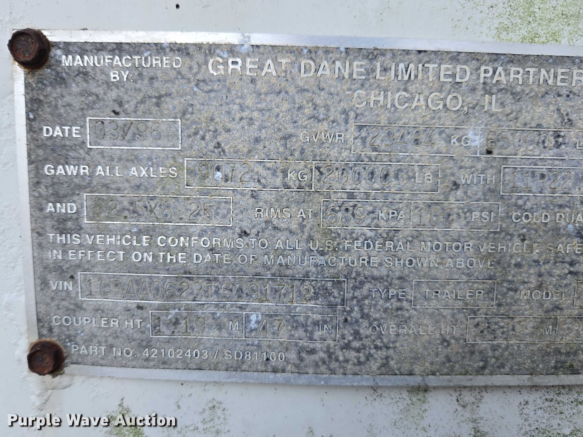 Purple Wave is selling a used Dry Van Trailer in Florida. This item is a 1996 Great Dane dry van trailer with the following: VIN: 1GRAA0623TS091712
