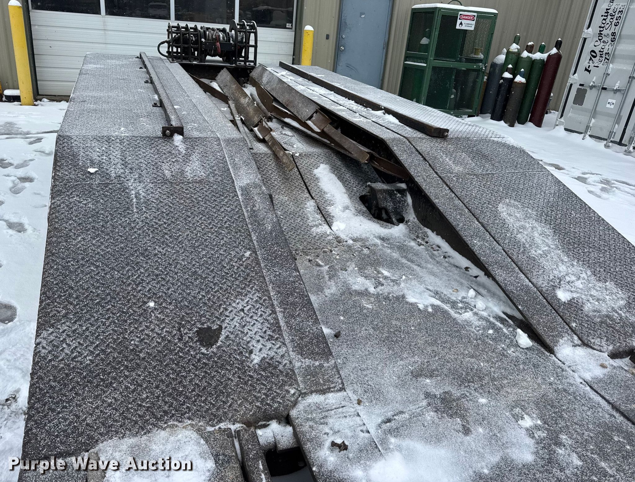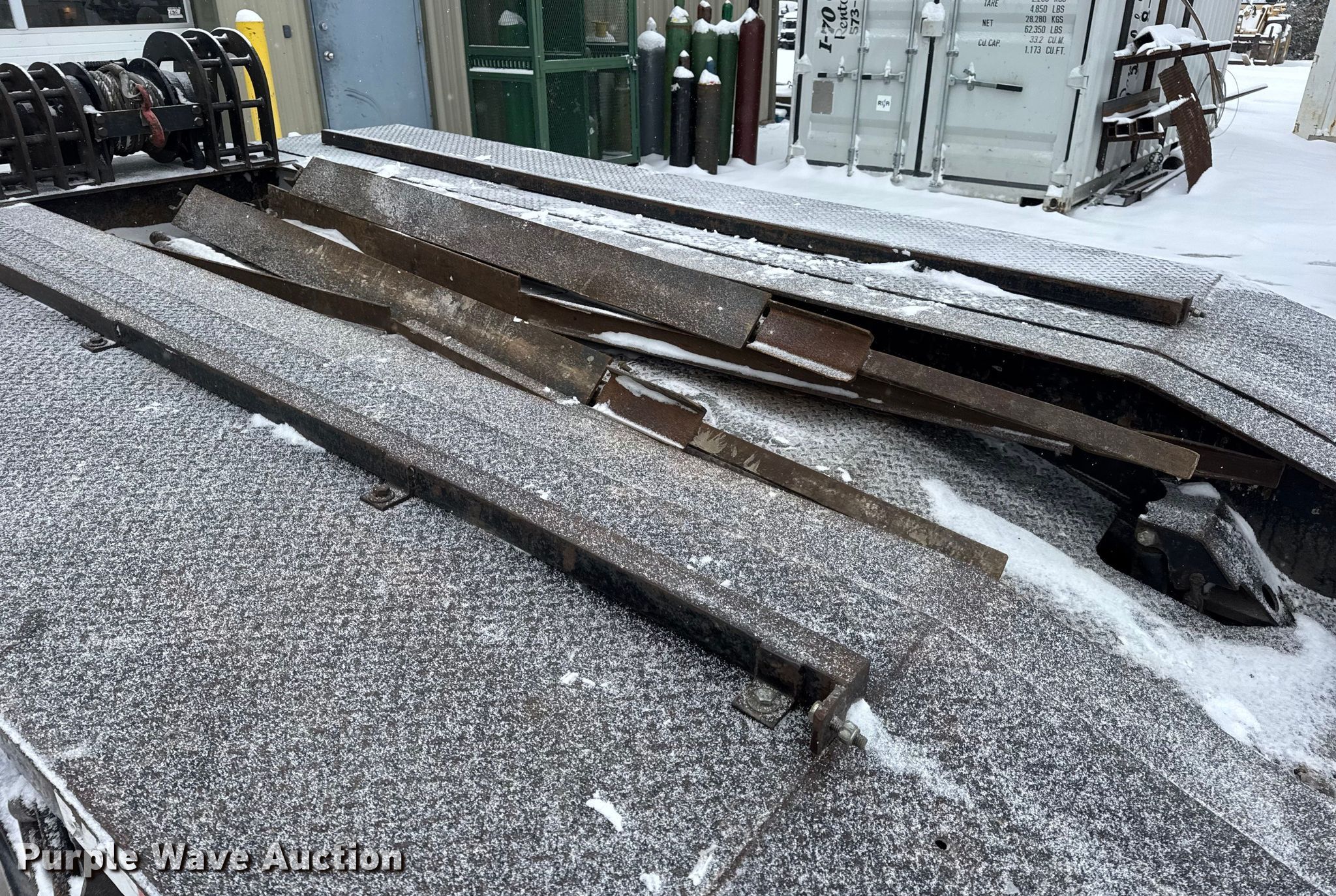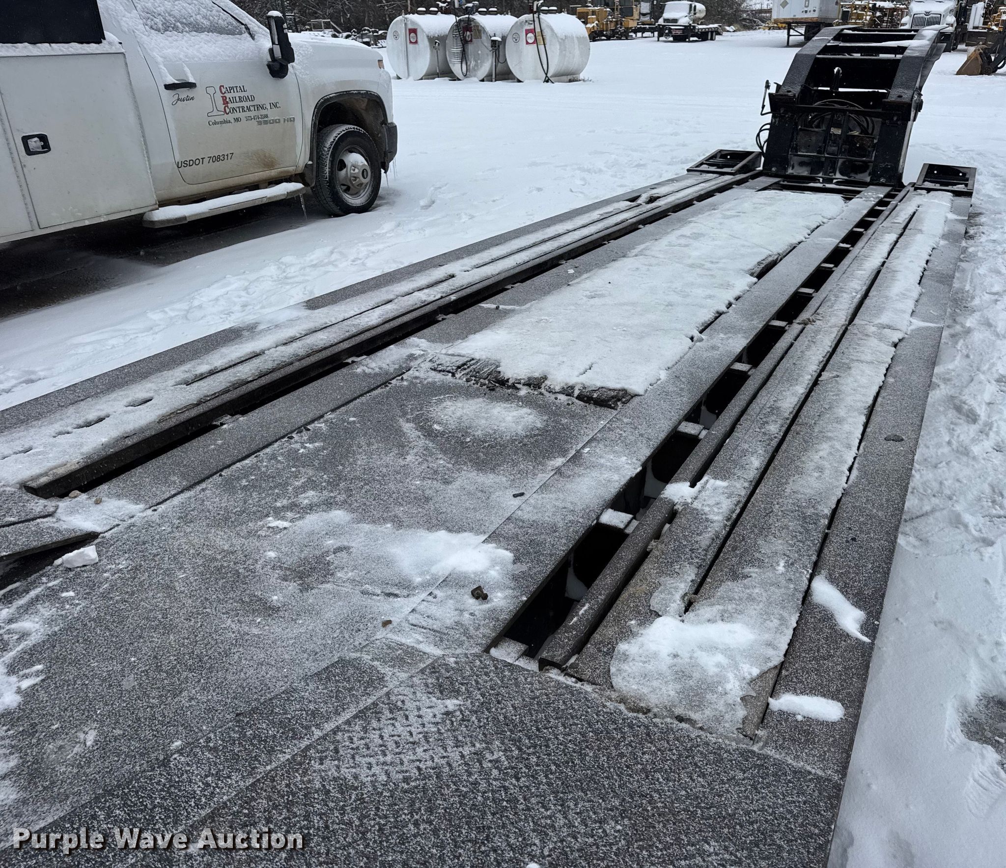 2007 Eager Beaver 50GSL-PT lowboy equipment trailer. VIN: 112SE251X7L072701. Dimensions Overall Length: 53' 2", Width: 102", Deck Length: 24', Width: 102", Rear deck length: 11', Ramps: Manual Length: 41". Features Deck type: Steel, Wood, Outriggers: Swing-out Board size: 12", Neck type: Detachable, Winch. Chassis Suspension: Air, Brakes: Air, Axles: Triple, GVWR: 122,700 lbs, GAWR: 20,280 lbs. Tires Aluminum wheels, Size: 255/70R22.5. Notes Deck boards damaged, Service records available upon request to [email protected]. Missouri title. Title distribution may be delayed up to 14 days from verification of funds. Capital Railroad Contracting Inc... Columbia, MO 65201