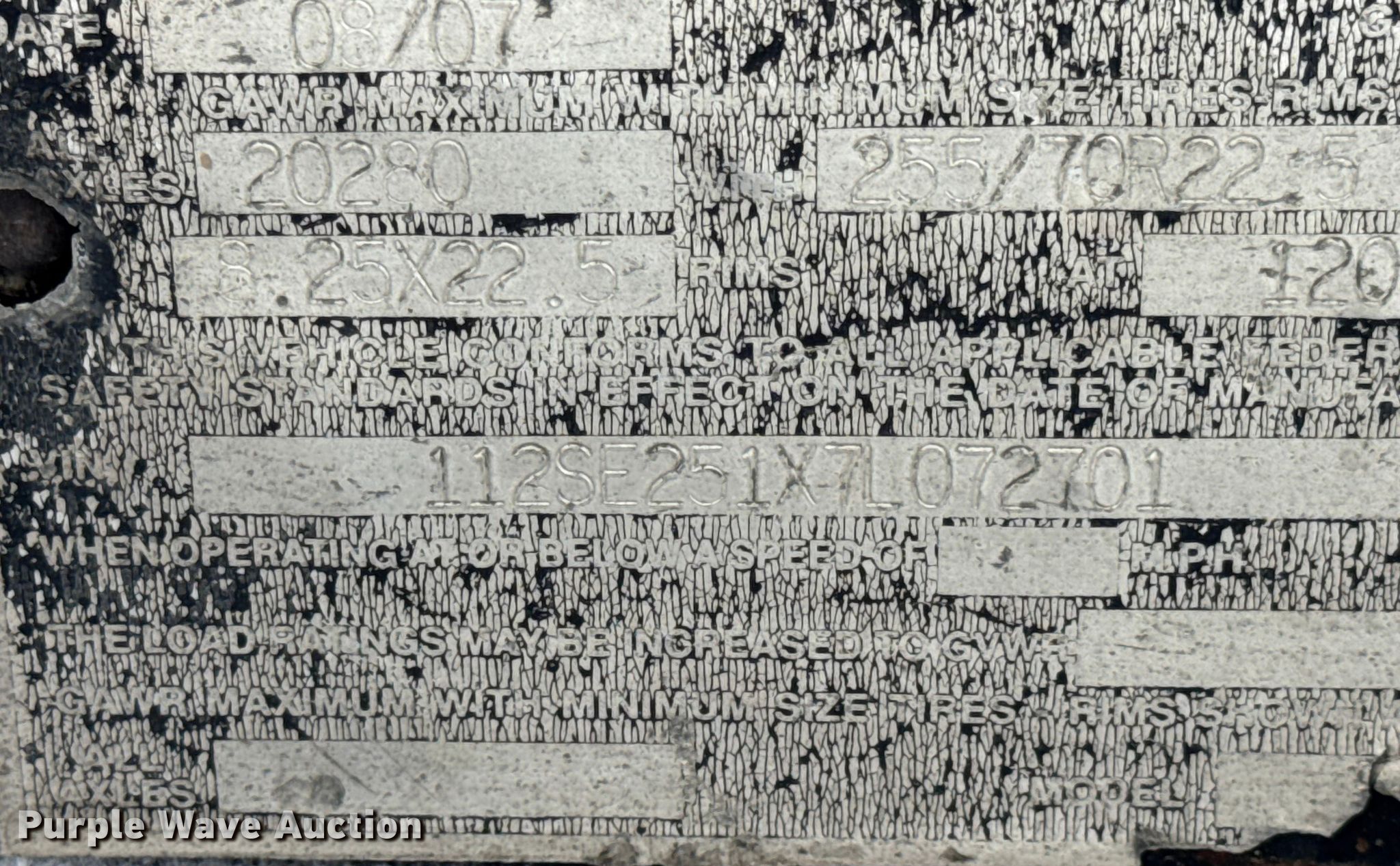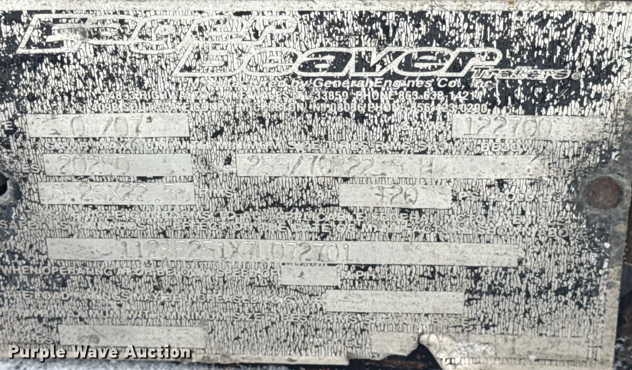 Purple Wave is selling a used Equip. Trailer in Missouri. This item is a 2007 Eager Beaver 50GSL-PT lowboy equipment trailer with the following: VIN: 112SE251X7L072701