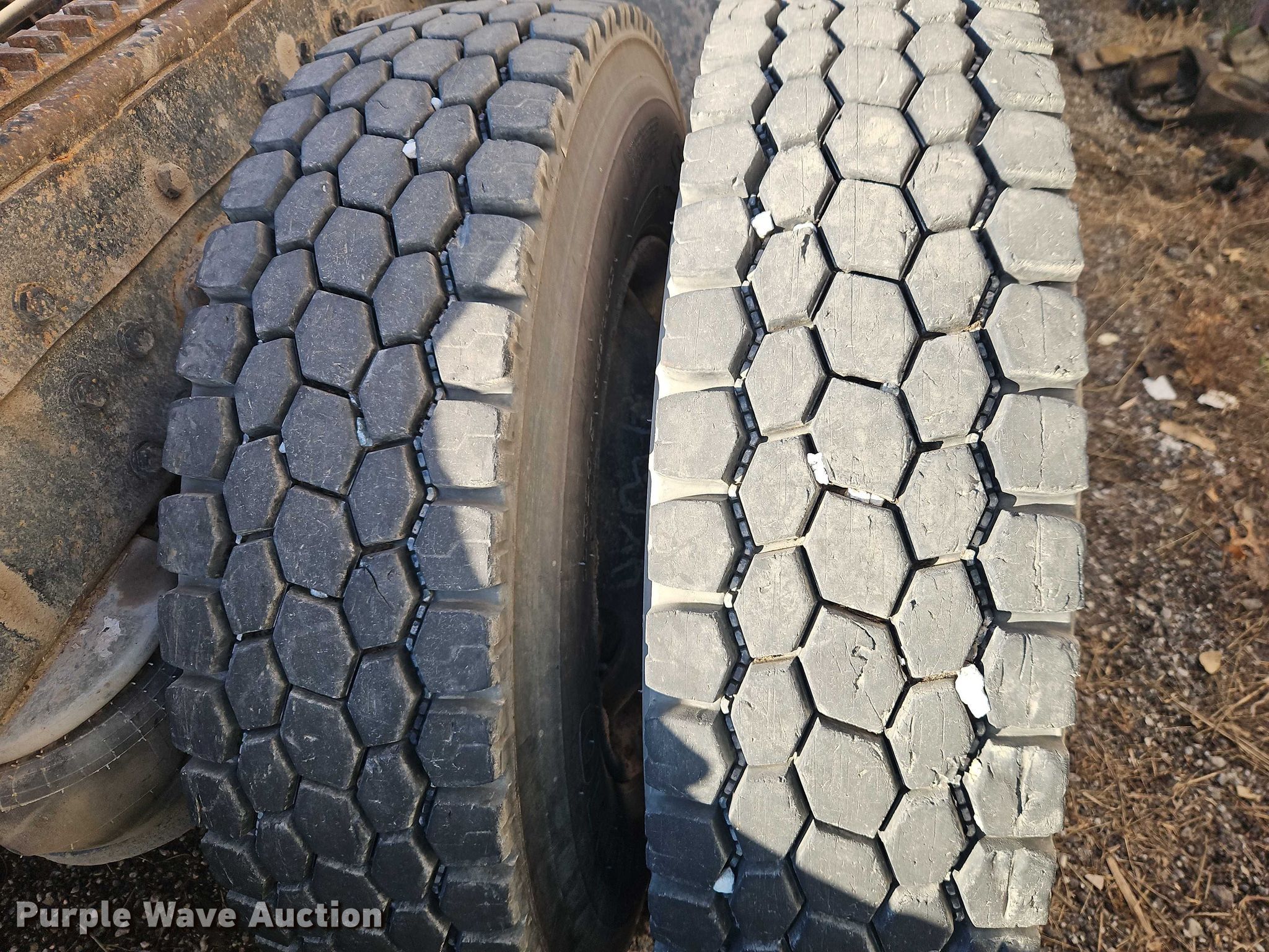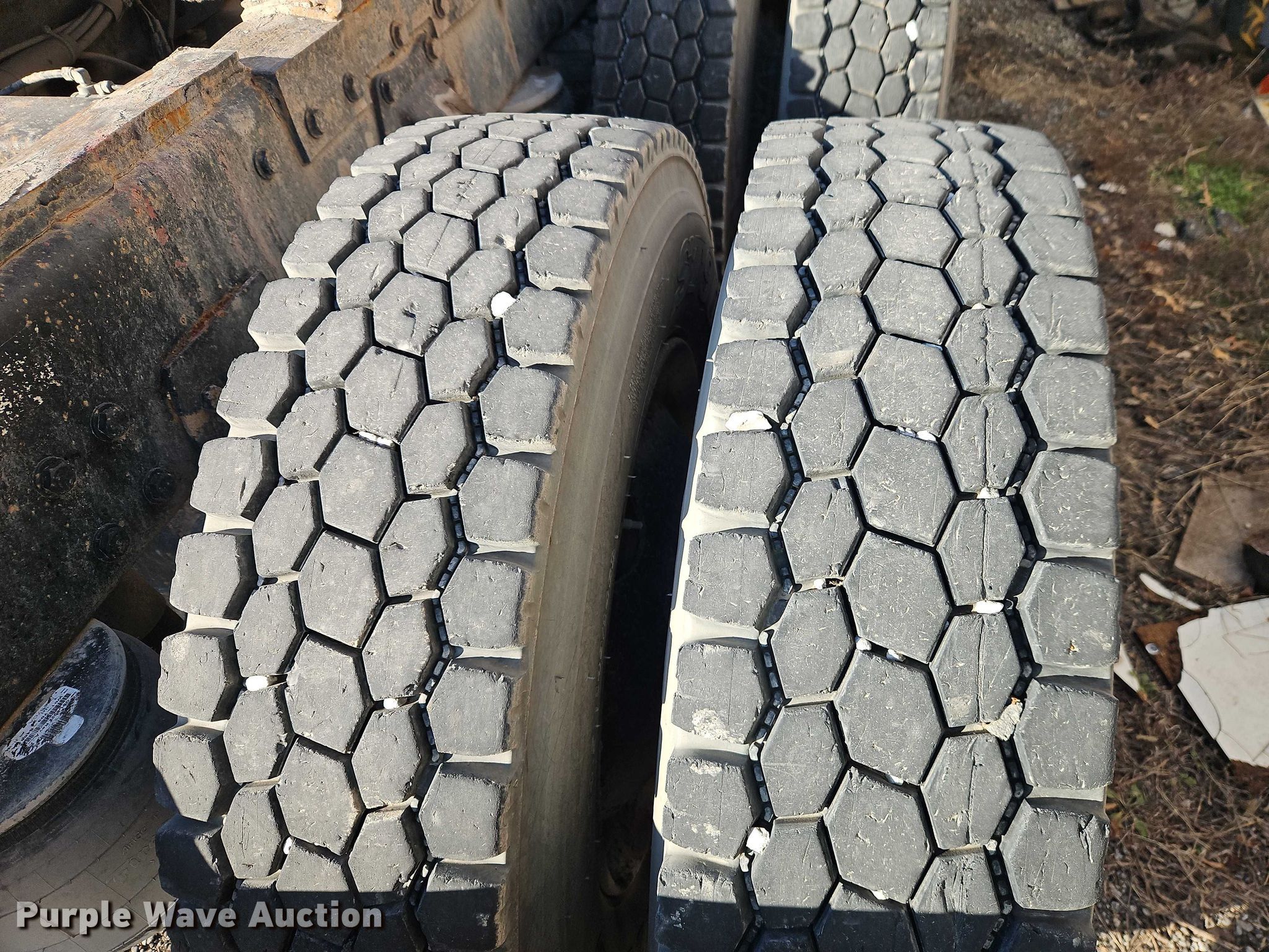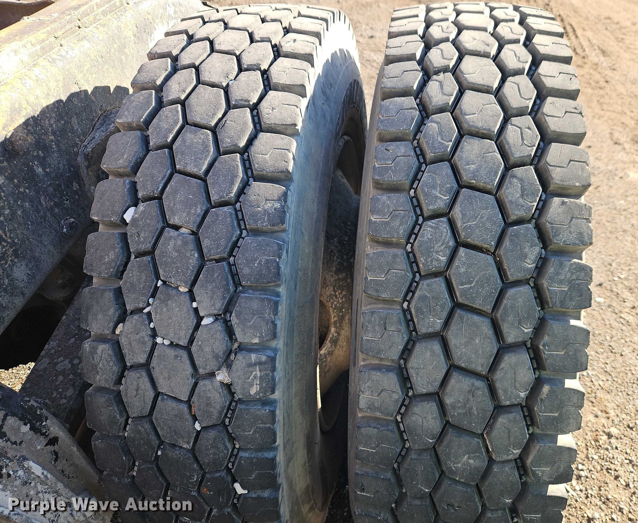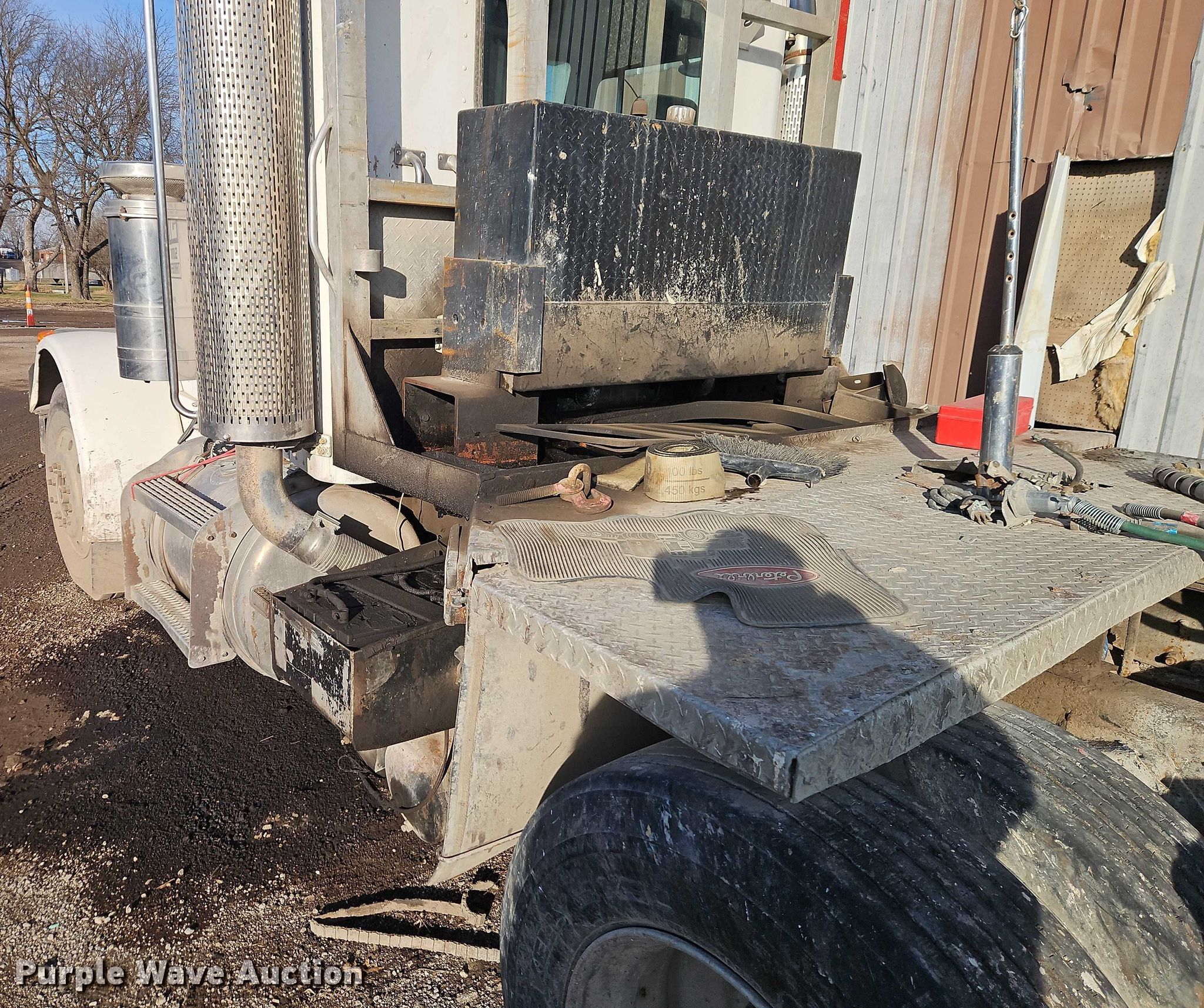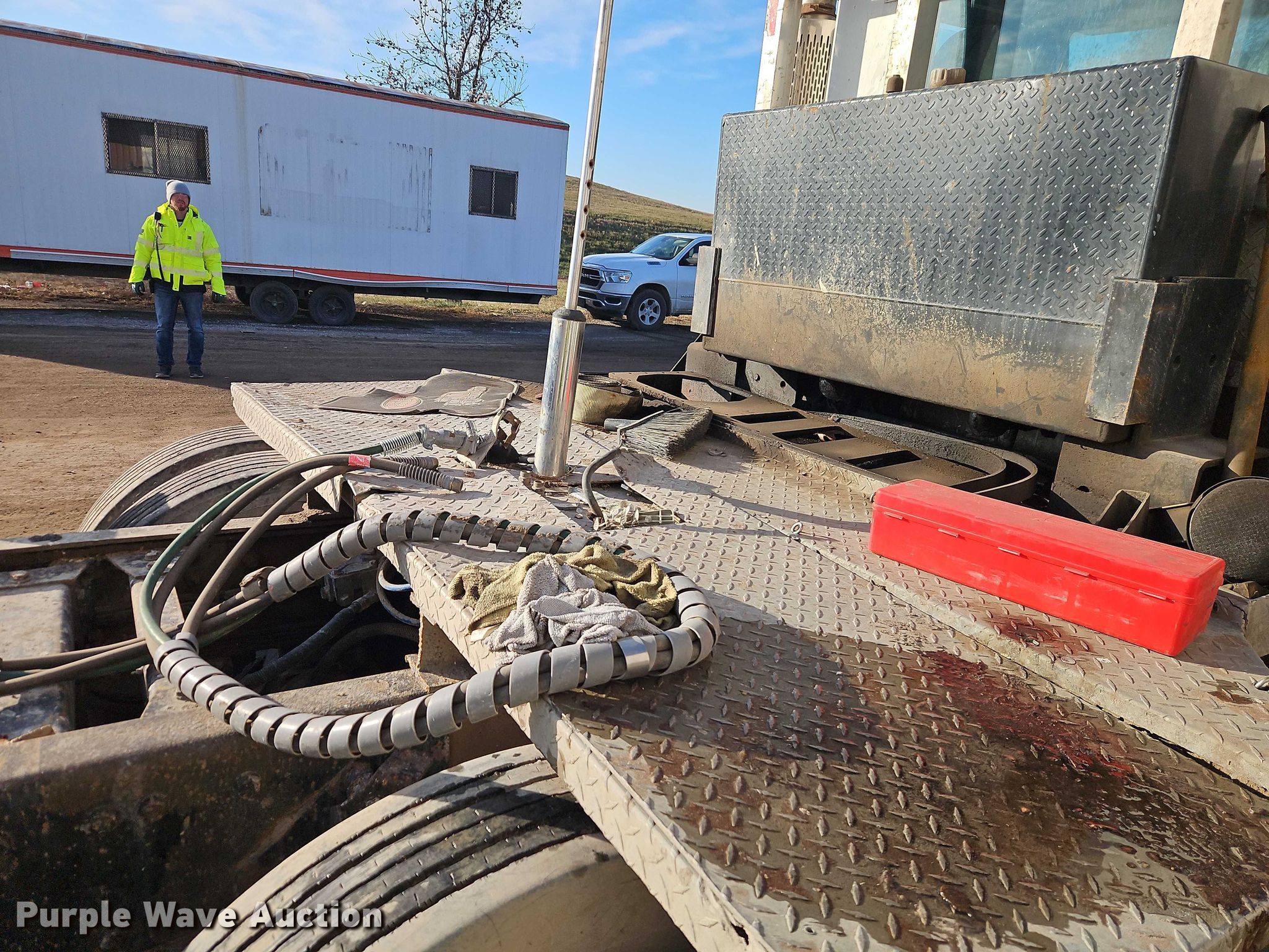1992 Peterbilt 379 semi truck. Miles: 1,120,102 on odometer, Hours: 7,493 on meter, VIN: 1XP5PBEX6ND323132. Engine Caterpillar, Displacement: 14.6L, Cylinders: 6, Fuel type: Diesel, Engine brake. Transmission Eaton Fuller, Manual, Speed: 15. Chassis Axles: Triple, Pusher axle, Differential lock: Inter-axle, Suspension: Air Dump valves, Brakes: Air, PTO, Wet kit, GVWR: 73,860 lbs FAWR: 12,860 lbs, IAWR: 22,000 lbs, RAWR: 22,000 lbs, Lift axle GAWR: 17,000 lbs. Interior AC, Heat, Air ride cab. Features Deck plate: Aluminum, Fifth wheel type: Air operated, Sliding, Fuel tank: Dual. Tires Size: 11R24.5, Lift axle: 295/75R22.5. Notes Non-operational engine , Non-operational unit, Unit must be towed or hauled. Missouri title. Title distribution may be delayed up to 14 days from verification of funds. KC Dumpster Company. Lee's Summit, MO 64082