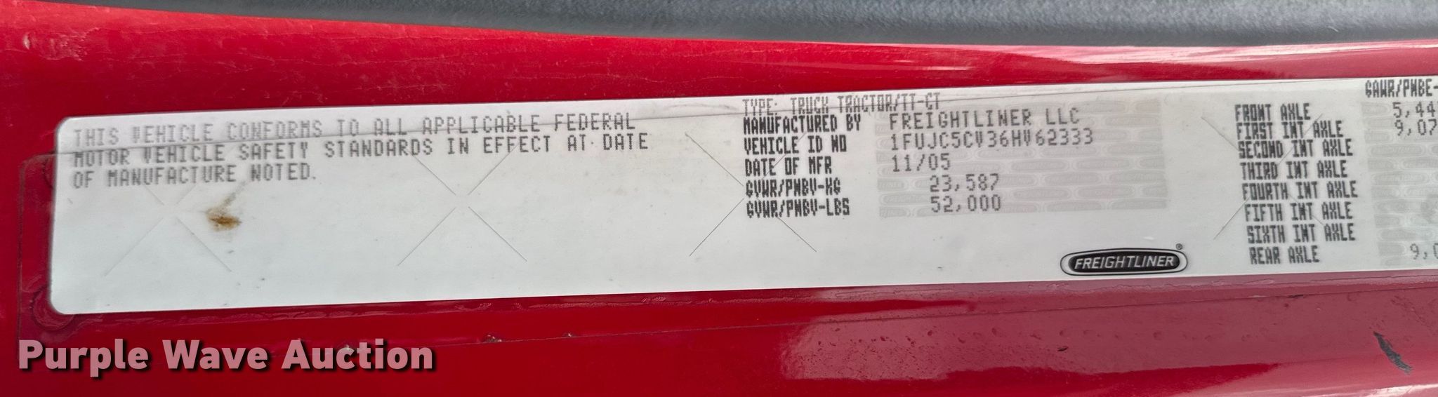 Purple Wave is selling a used Truck Tractor in Iowa. This item is a 2006 Freightliner Business Class M2 semi truck with the following: Miles: 461,408 on odometer, Hours: 15,272 on meter, VIN: 1FUJC5CV36HV62333