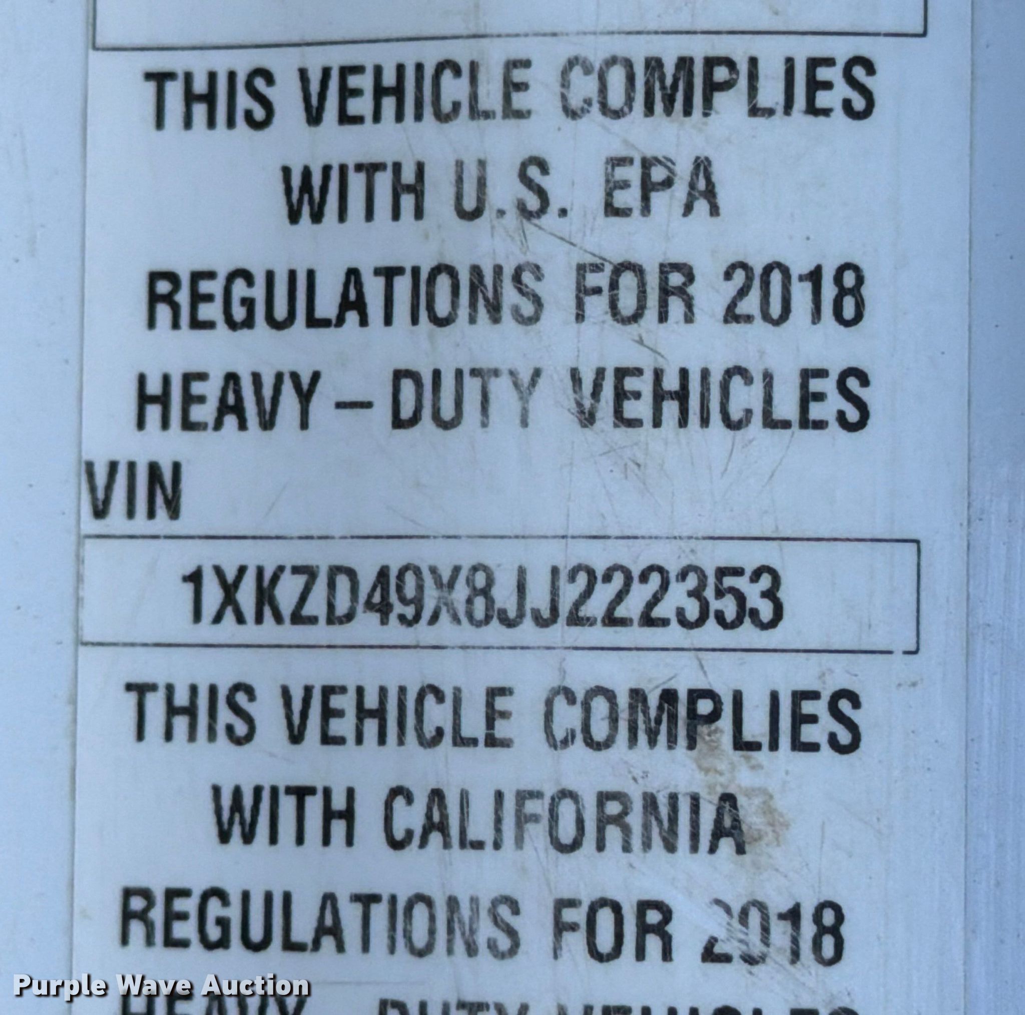 - VIN: 1XKZD49X8JJ222353
