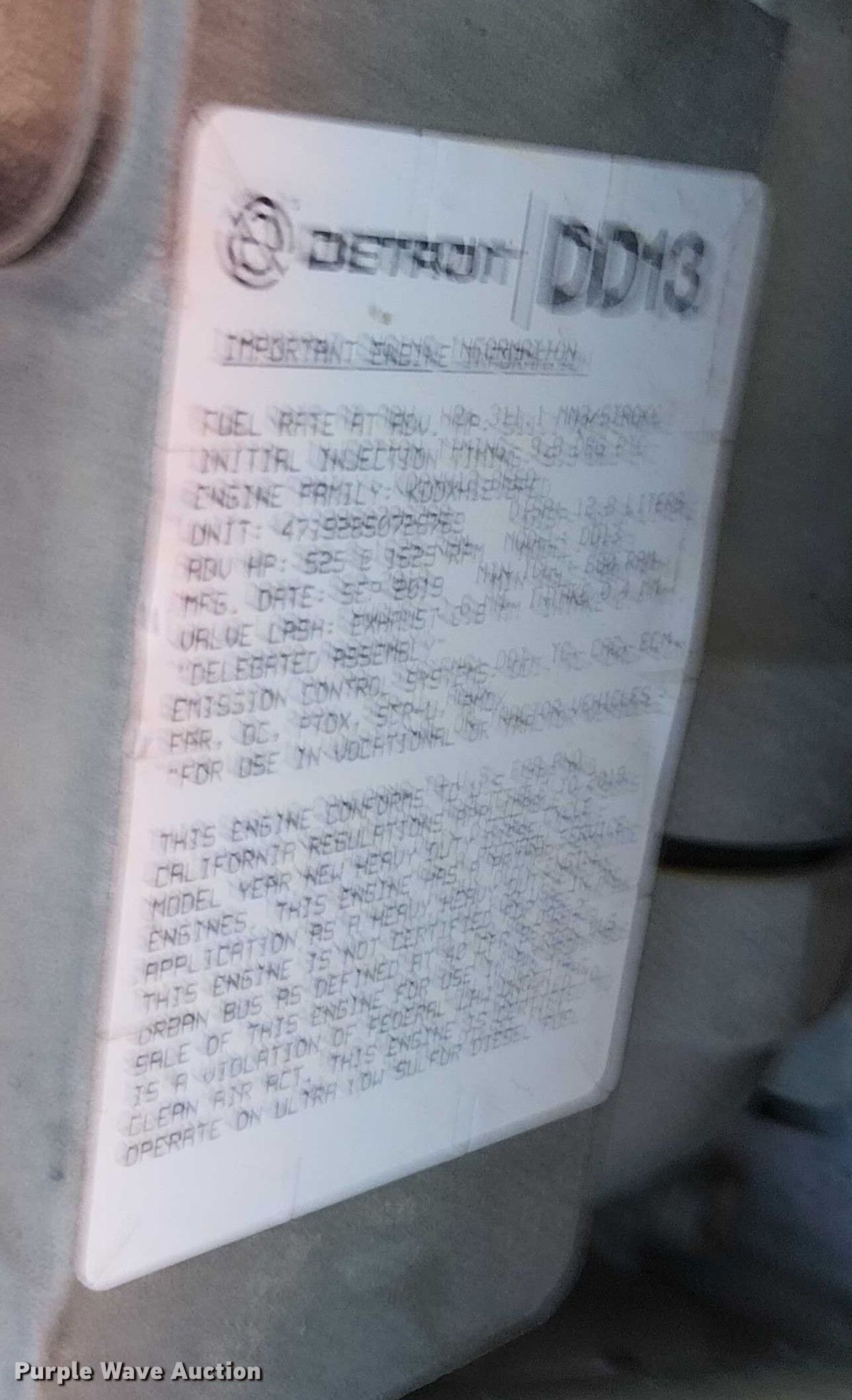 2020 Freightliner Cascadia semi truck. Miles: 461,591 on odometer, VIN: 3AKGHTDV2LSLR1585, Unit #: T004. Engine Detroit Diesel DD13, Displacement: 12.8L, Cylinders: 6, Fuel type: Diesel. Transmission Automated manual. Chassis Axles: Tandem, Differential lock: Inter-axle, Suspension: Air Dump valves, Brakes: Air, GVWR: 52,350 lbs FAWR: 12,350 lbs, IAWR: 20,000 lbs, RAWR: 20,000 lbs. Interior AC, Heat, Power windows, Power locks, Cruise control, Air ride cab. Features Deck plate: Aluminum, Fifth wheel type: Air operated, Fuel tank: Dual. Tires Size: 295/75R22.5. Notes Decals will be removed prior to auction. Buyer responsible for all aspects of state emissions compliance. California title. Title distribution may be delayed up to 30 days from verification of funds. One World Transportation. Brawley, CA 92227
