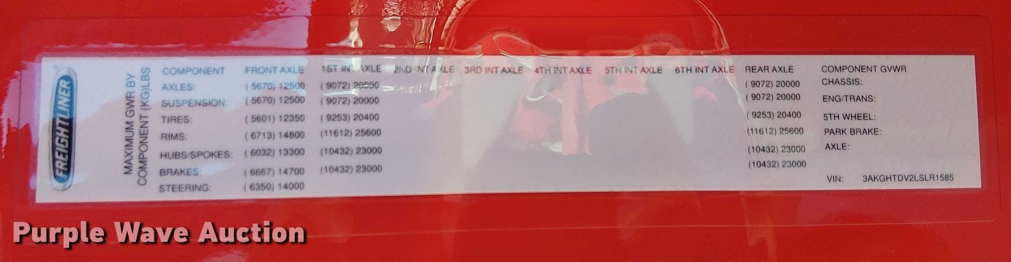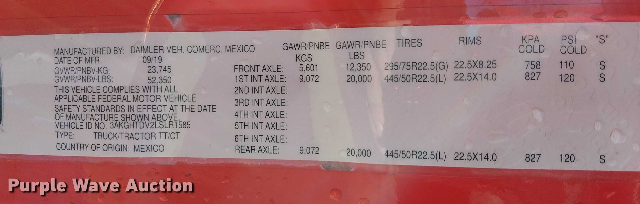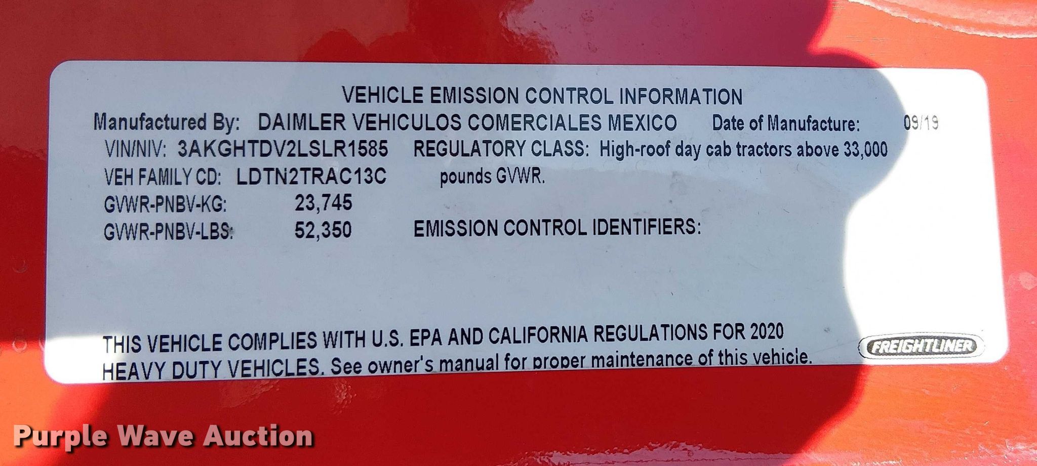 Take a look at this used 2020 Freightliner Cascadia semi truck being sold on December 31st, 2025 in the Wednesday December 31 Truck and Trailer Auction made by Freightliner. Take a look at all of the item information below or take a look at similar auctions for Trucks.