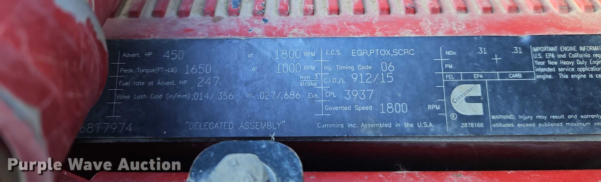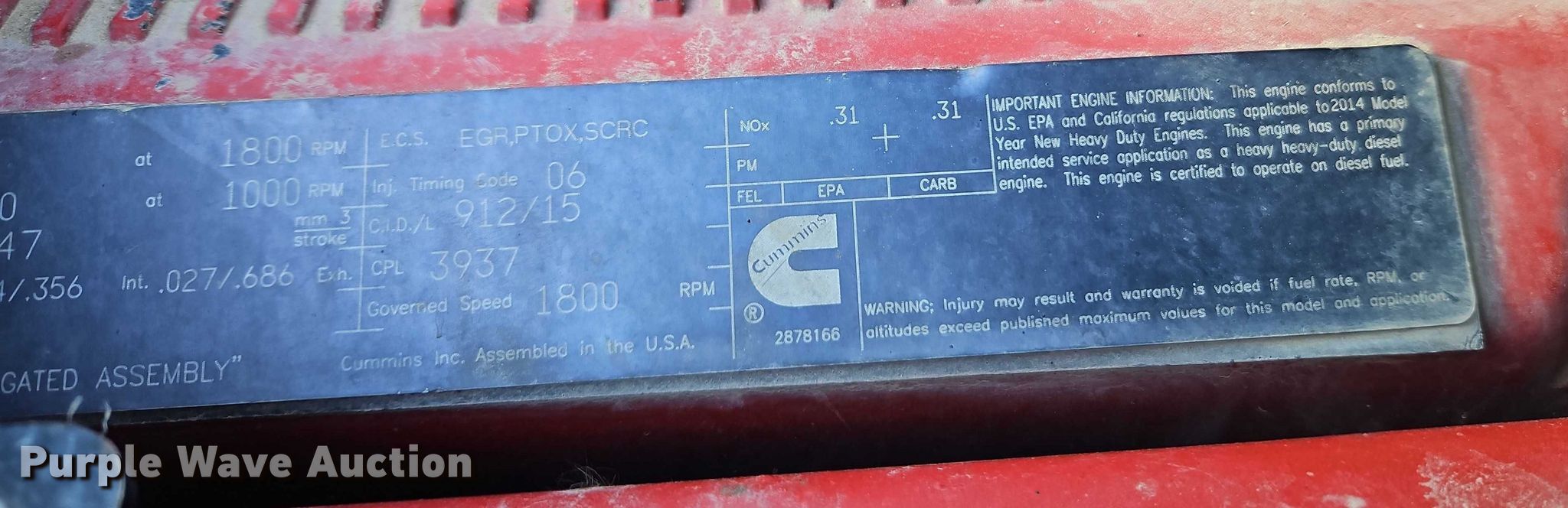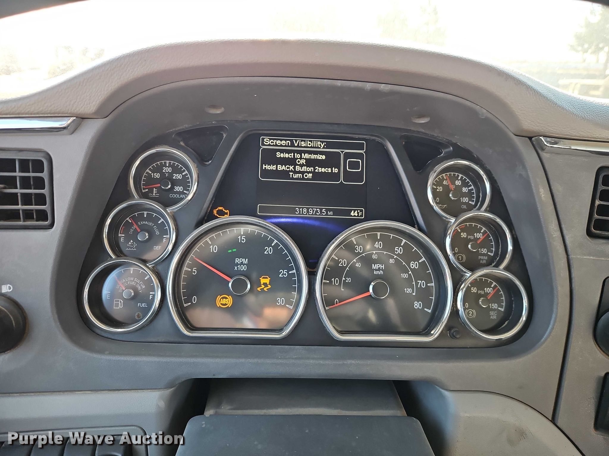 2015 Peterbilt 579 semi truck. Miles: 318,974 on odometer, Hours: 12,229 on meter, VIN: 1XPBD49X2FD277107, Unit #: 60. Engine Cummins ISX15, Serial: 79776988, Displacement: 15L, Cylinders: 6, Fuel type: Diesel, Engine brake. Transmission Eaton Fuller, Manual, Speed: 13. Chassis Axles: Tandem, Differential lock: Inter-axle, Suspension: Air Dump valves, Brakes: Air, PTO, Wet kit, GVWR: 52,350 lbs FAWR: 12,350 lbs, IAWR: 20,000 lbs, RAWR: 20,000 lbs. Interior AC, Heat, Heated mirrors, Power windows, Power locks, Cruise control, Air ride cab. Features Deck plate: Aluminum, Fifth wheel type: Air operated, Sliding, Fuel tank: Dual. Tires Size: 11R22.5. Notes Dash warning indicator: Check engine, ABS, Traction control, Windshield chipped or cracked. Missouri title. Title has a lien that will be released following the close of the auction. Title distribution may be delayed up to 30 days from verification of funds. Robertson Custom Dozing LLC. Knob Noster, MO 65336