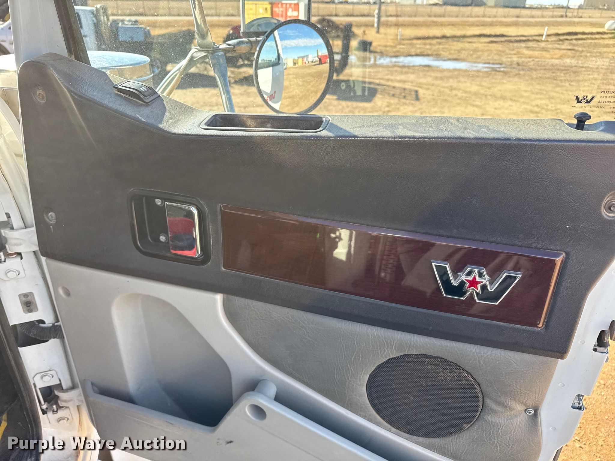 2013 Western Star 4900FA semi truck. Miles: 706 on odometer, Miles: Actual unknown, VIN: 5KJJAEDR4DPFA4055. Engine Detroit Diesel DD15, Displacement: 14.8L, Cylinders: 6, Fuel type: Diesel, Engine brake. Transmission Manual, Speed: 13. Chassis Axles: Tandem, Differential lock: Full, Suspension: Air Dump valves, Brakes: Air, PTO, Wet kit, GVWR: 54,320 lbs FAWR: 14,320 lbs, IAWR: 20,000 lbs, RAWR: 20,000 lbs. Interior AC, Heat, Heated mirrors, Power windows, Cruise control, Air ride cab. Features Fifth wheel type: Air operated, Sliding, Fuel tank: Dual. Tires Size: 11R24.5. Notes Dash warning indicator: Check engine. Kansas title. Mileage has not been verified. Exempt will be written in the odometer disclosure on the title. Title distribution may be delayed up to 14 days from verification of funds. Small Man Ag LLC. Hugoton, KS 67951