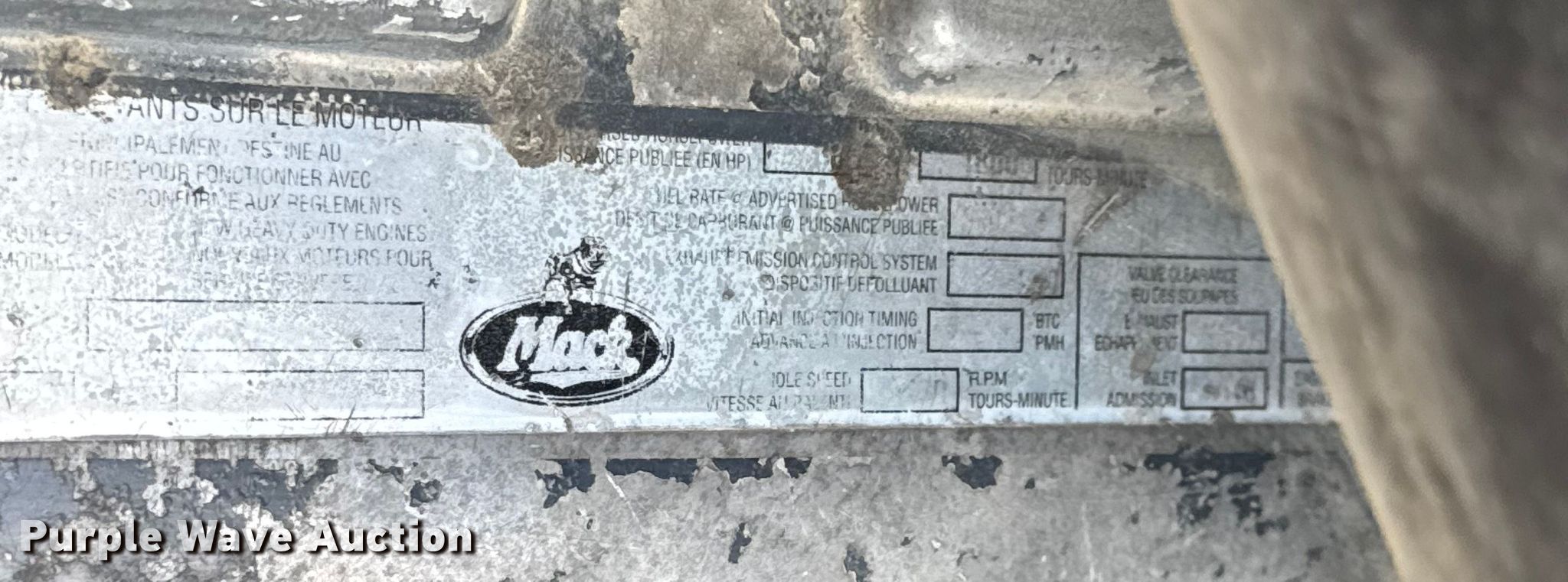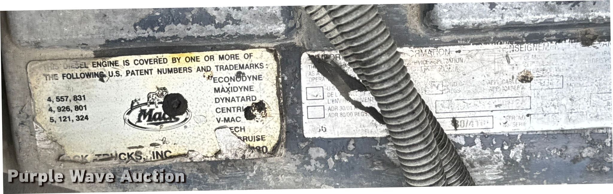 2004 Mack CH613 semi truck. Miles: 554,756 on odometer, Hours: 21,625 on meter, VIN: 1M1AA13Y94N156359. Engine Mack, Displacement: 12.0L, Cylinders: 6, Fuel type: Diesel. Transmission Mack Maxitorque, Manual. Chassis Axles: Tandem, Differential lock: Inter-axle, Suspension: Air Dump valves, Brakes: Air, PTO, Wet kit, GVWR: 52,000 lbs FAWR: 12,000 lbs, IAWR: 20,000 lbs, RAWR: 20,000 lbs. Interior AC, Heat, Heated mirrors, Cruise control, Air ride cab. Features Deck plate: Aluminum, Fifth wheel type: Air operated, Sliding, Fuel tank: Single. Tires Size: 11R24.5. Notes Dash warning indicator: ABS, Engine issues , Unit must be towed or hauled , Non-operational unit. Illinois title. Title distribution may be delayed up to 14 days from verification of funds. Anthem Excavation & Demolition. Aurora, IL 60505