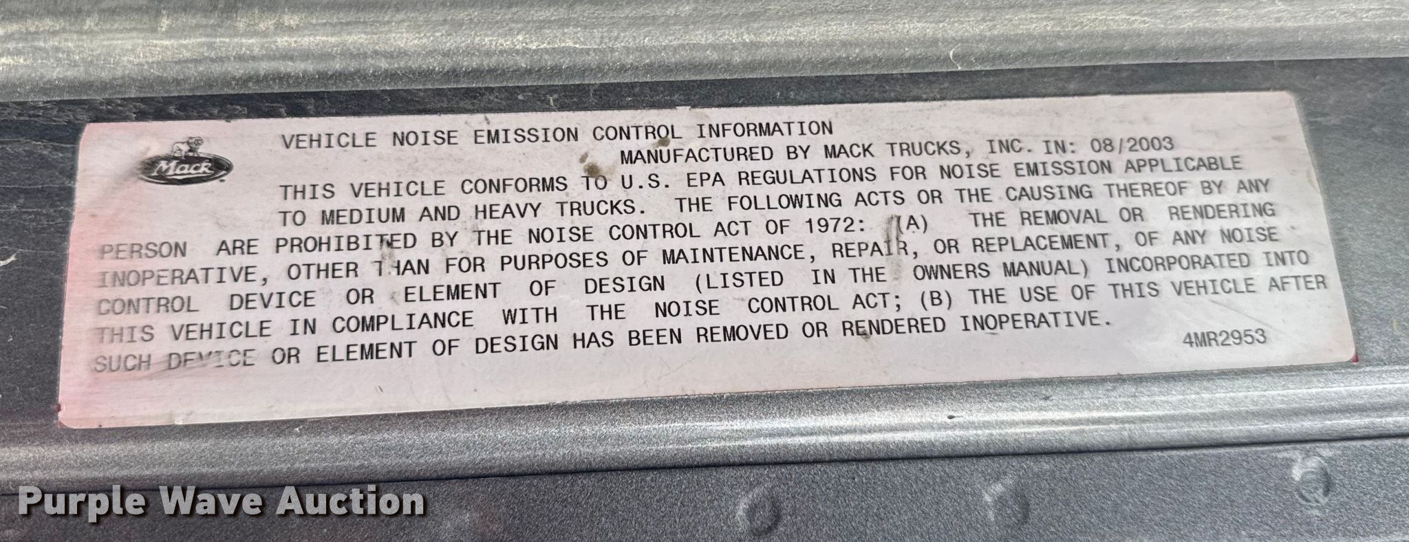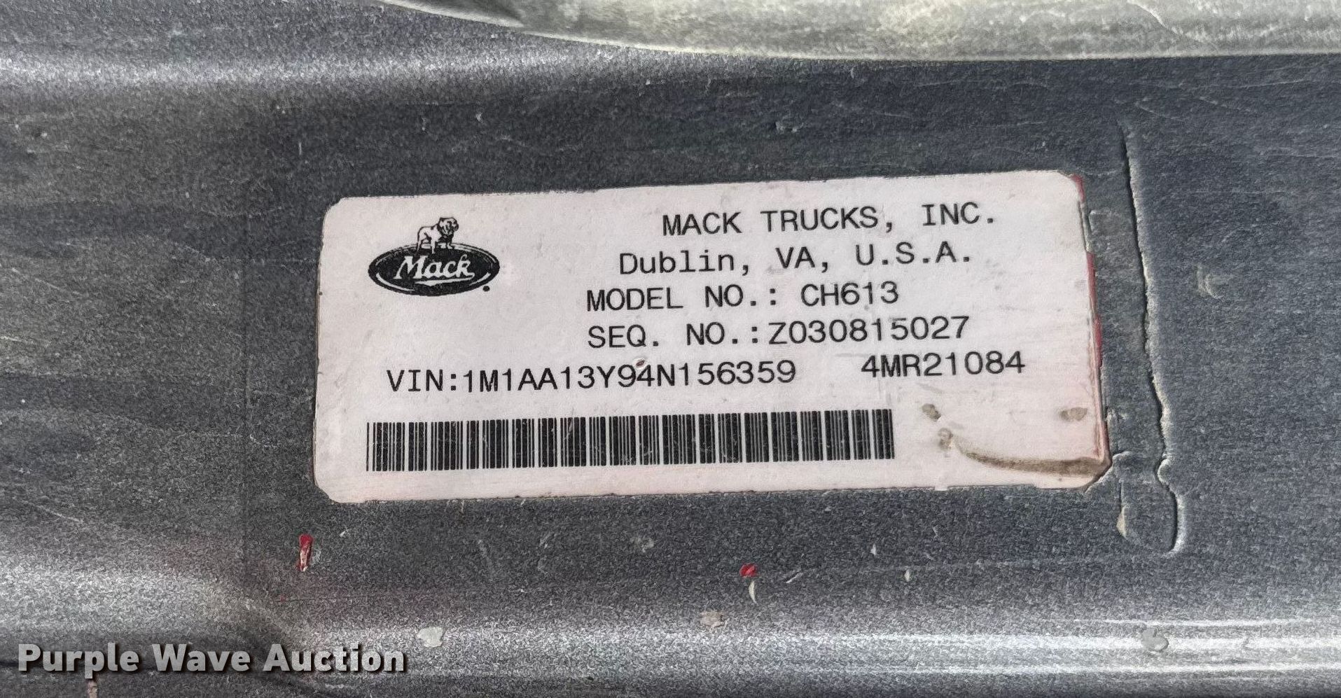 Take a look at this used 2004 Mack CH613 semi truck being sold on December 31st, 2025 in the Wednesday December 31 Truck and Trailer Auction made by Mack. Take a look at all of the item information below or take a look at similar auctions for Trucks.