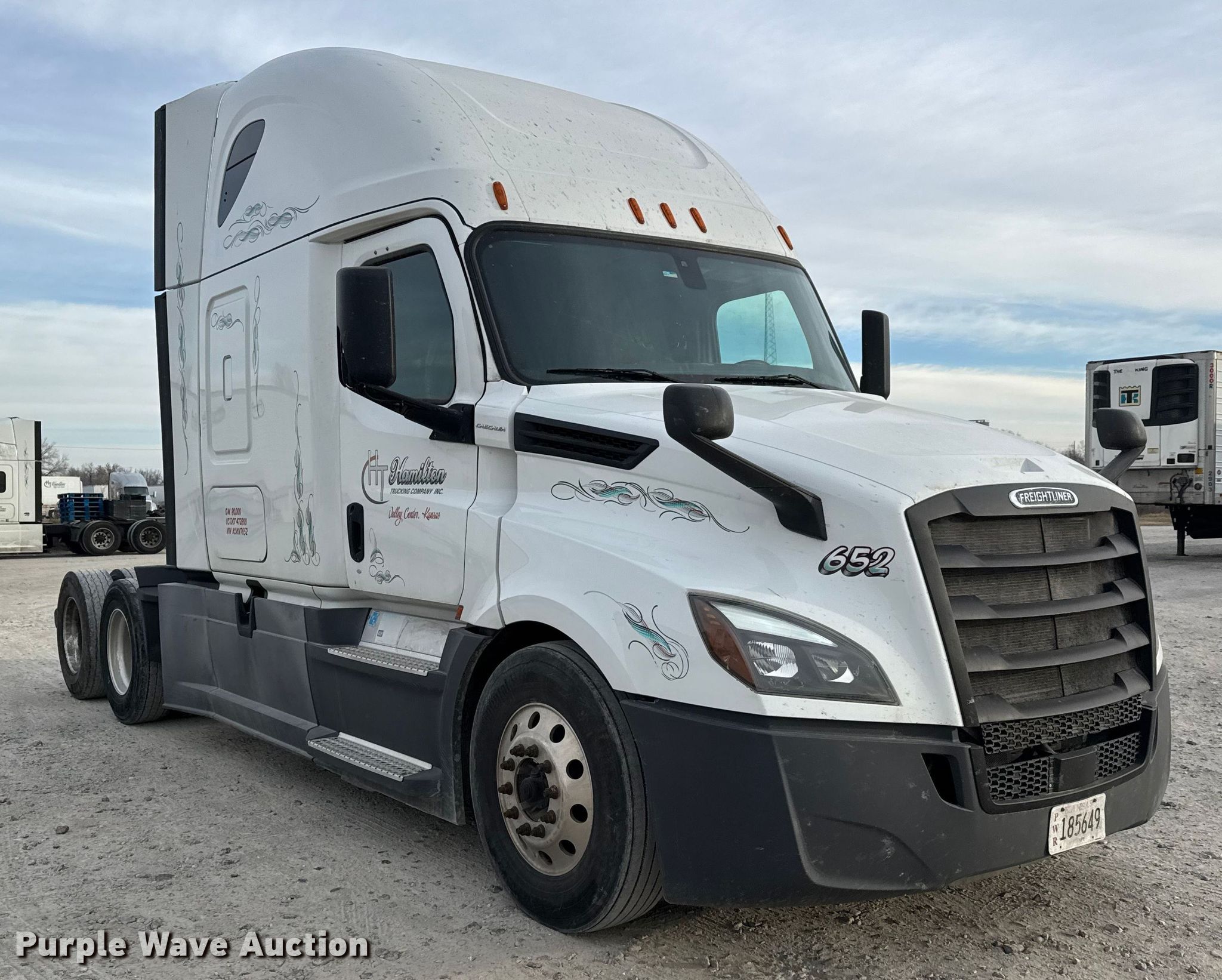 Purple Wave is selling a used Truck Tractor in Kansas. This item is a 2019 Freightliner Cascadia 126 semi truck with the following: Miles: 801,000 on odometer, VIN: 1FUJHHDR1KLKN7652