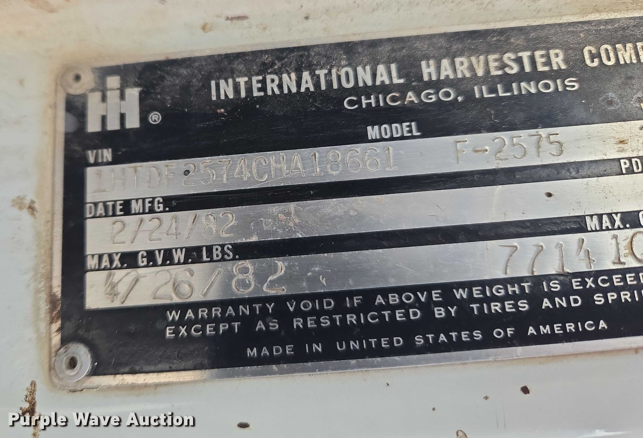 Take a look at this used 1982 International 2575 winch truck being sold on December 31st, 2025 in the Wednesday December 31 Truck and Trailer Auction made by International. Take a look at all of the item information below or take a look at similar auctions for Trucks.