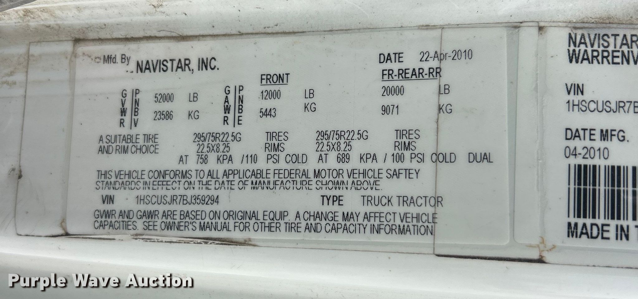 Purple Wave is selling a used Truck Tractor in Illinois. This item is a 2011 International ProStar semi truck with the following: Miles: Unknown, VIN: 1HSCUSJR7BJ359294