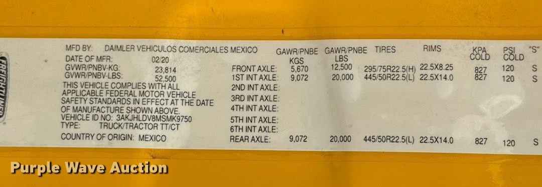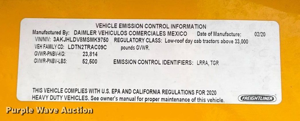 Take a look at this used 2021 Freightliner Cascadia 126 semi truck being sold on December 31st, 2025 in the Wednesday December 31 Truck and Trailer Auction made by Freightliner. Take a look at all of the item information below or take a look at similar auctions for Trucks.
