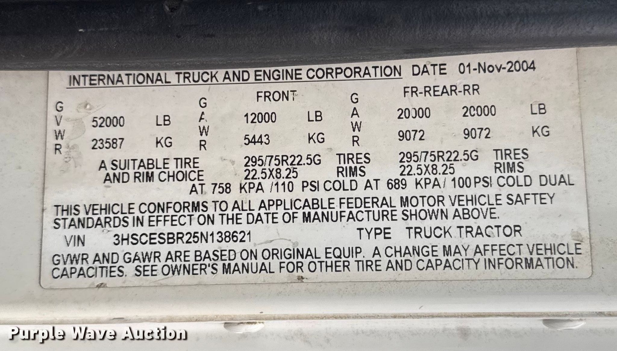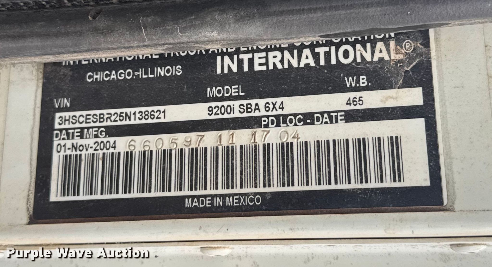 Take a look at this used 2005 International 9200i semi truck being sold on December 31st, 2025 in the Wednesday December 31 Truck and Trailer Auction made by International. Take a look at all of the item information below or take a look at similar auctions for Trucks.