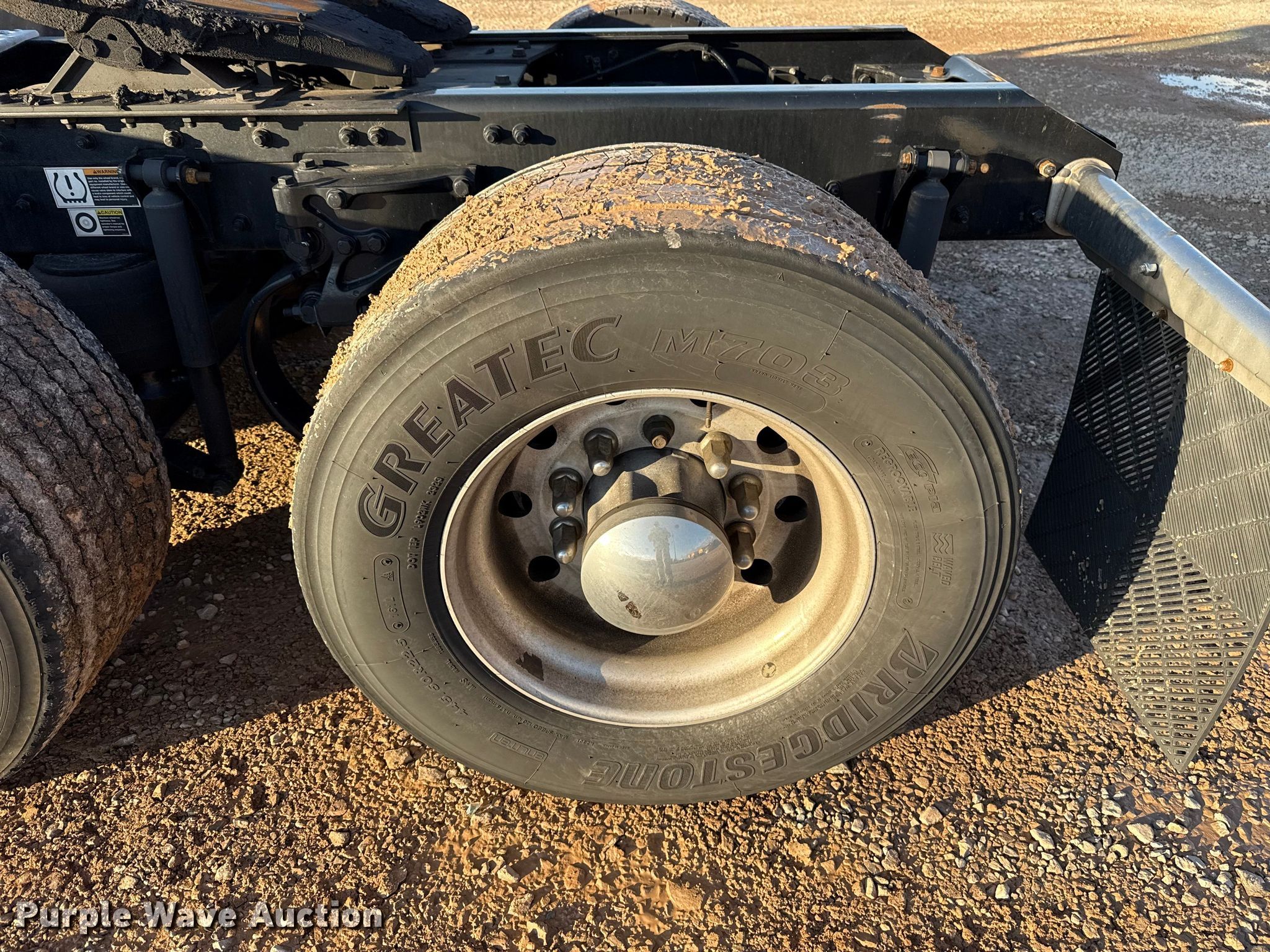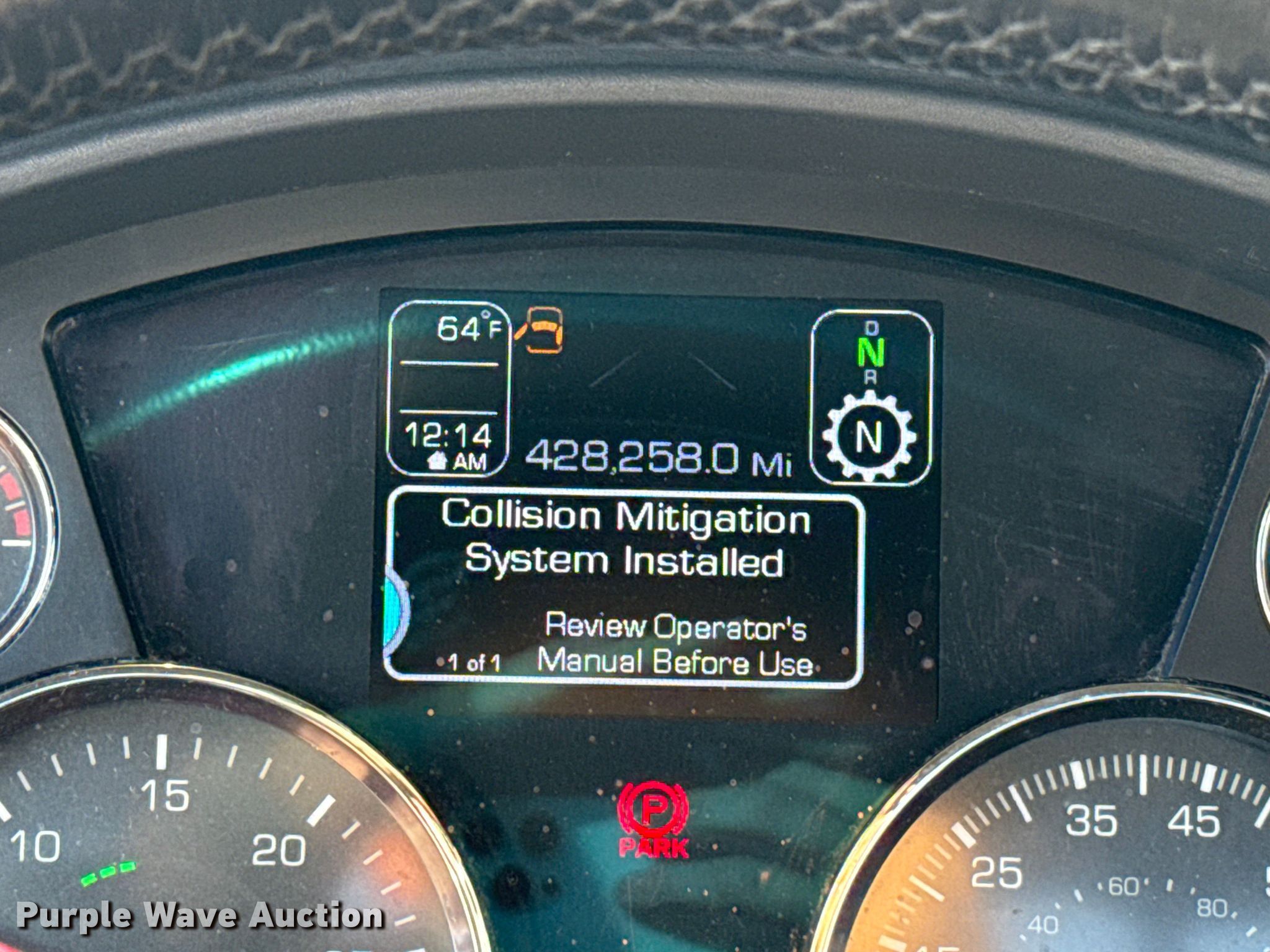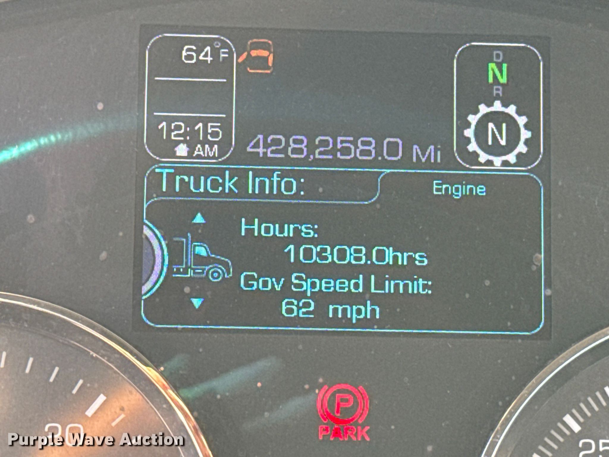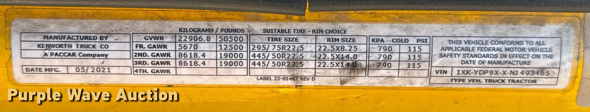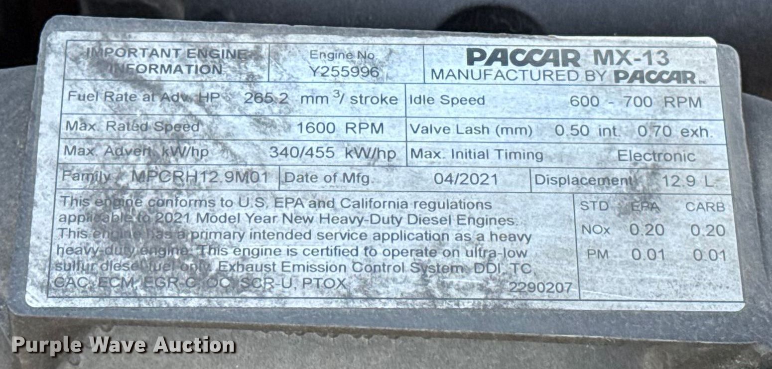 2022 Kenworth T680 semi truck. Miles: 428,258 on odometer, Hours: 10,308 on meter, VIN: 1XKYDP9XXNJ493465, Unit #: 22546. Engine Paccar MX13, Serial: Y255996, Displacement: 12.9L, Cylinders: 6, Fuel type: Diesel, HP: 340, kW: 455, Engine brake. Transmission Automated manual. Chassis Axles: Tandem, Differential lock: Inter-axle, Suspension: Air Dump valves, Brakes: Air, GVWR: 50,500 lbs FAWR: 12,500 lbs, IAWR: 19,000 lbs, RAWR: 19,000 lbs. Interior AC, Heat, Heated mirrors, Power windows, Power locks, Cruise control, Air ride cab, Auxiliary controls. Features Deck plate: Aluminum, Fifth wheel type: Fixed, Fuel tank: Single. Tires Front: 295/75R22.5, Rear: 445/50R22.5. Notes Dash warning indicator: Check engine. Oklahoma title. Title distribution may be delayed up to 30 days from verification of funds. Gemini Motor Transport. Oklahoma City, OK 73127