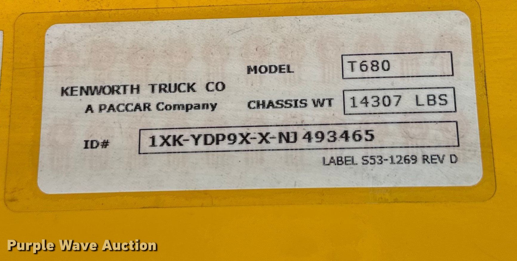 Purple Wave is selling a used Truck Tractor in Oklahoma. This item is a 2022 Kenworth T680 semi truck with the following: Miles: 428,258 on odometer, Hours: 10,308 on meter, VIN: 1XKYDP9XXNJ493465, Unit #: 22546