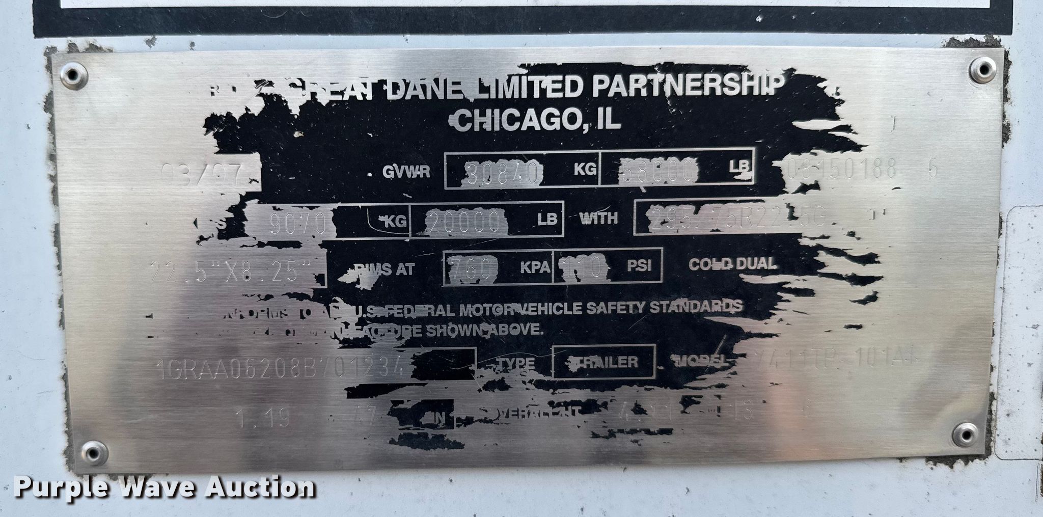 Purple Wave is selling a used Dry Van Trailer in Kansas. This item is a 2008 Great Dane dry van trailer with the following: VIN: 1GRAA06208B701234