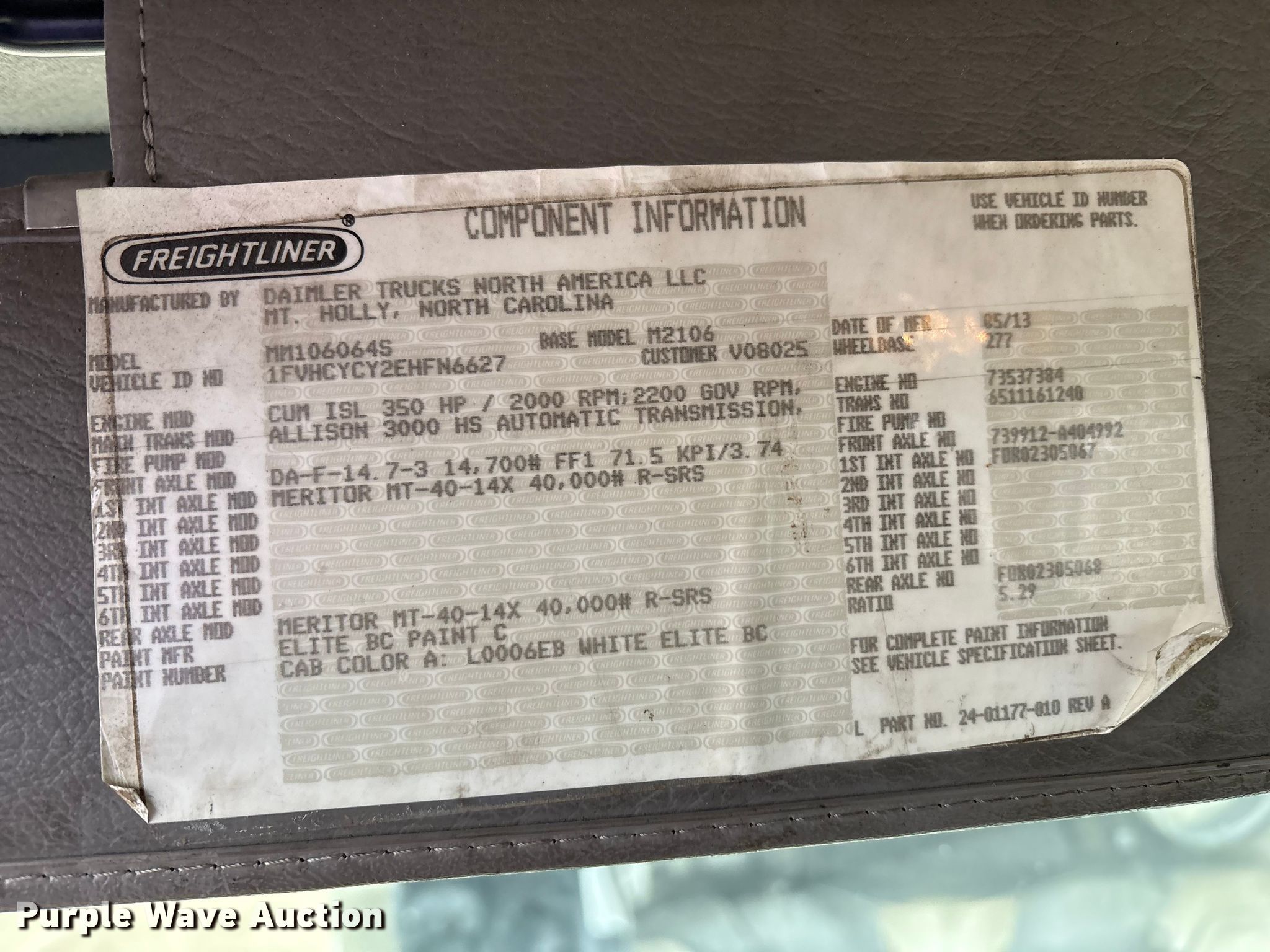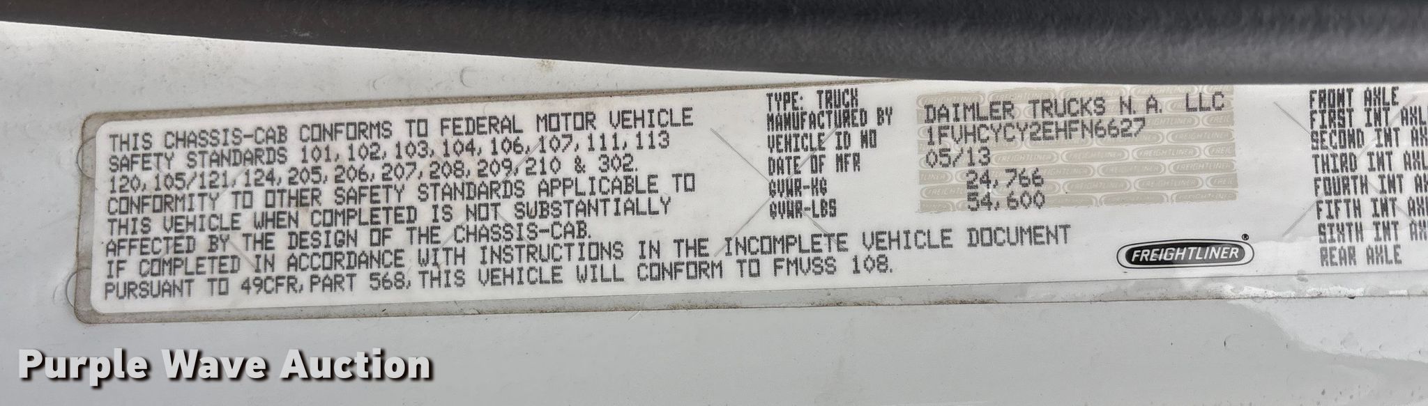 - VIN: 1FVHCYCY2EHFN6627