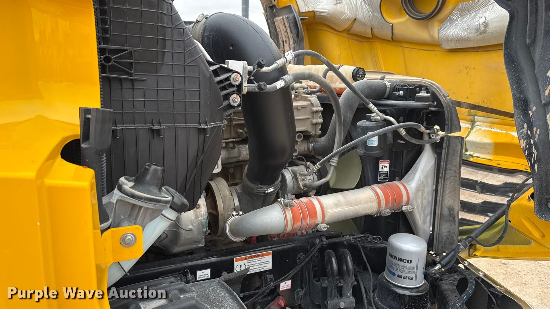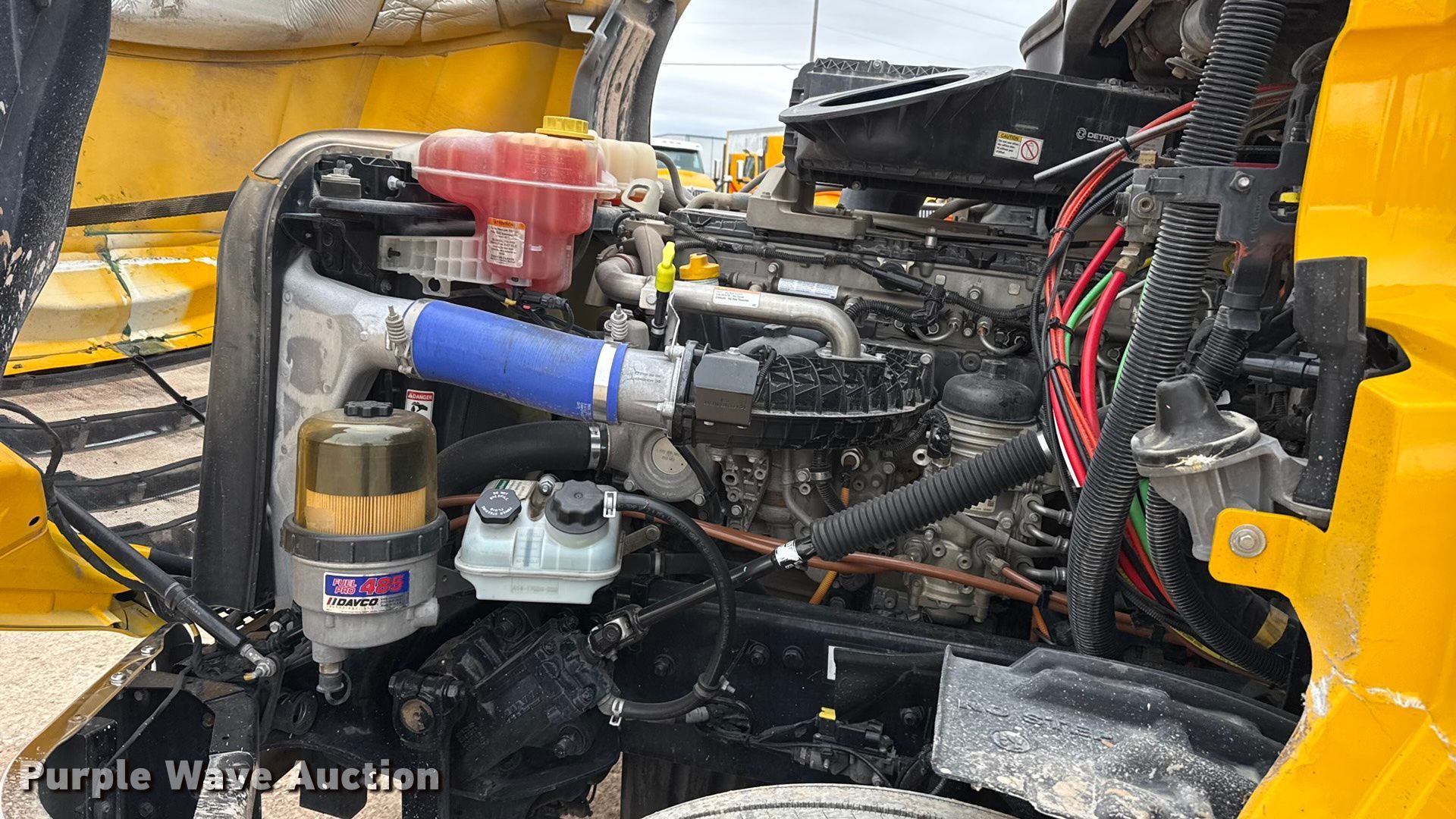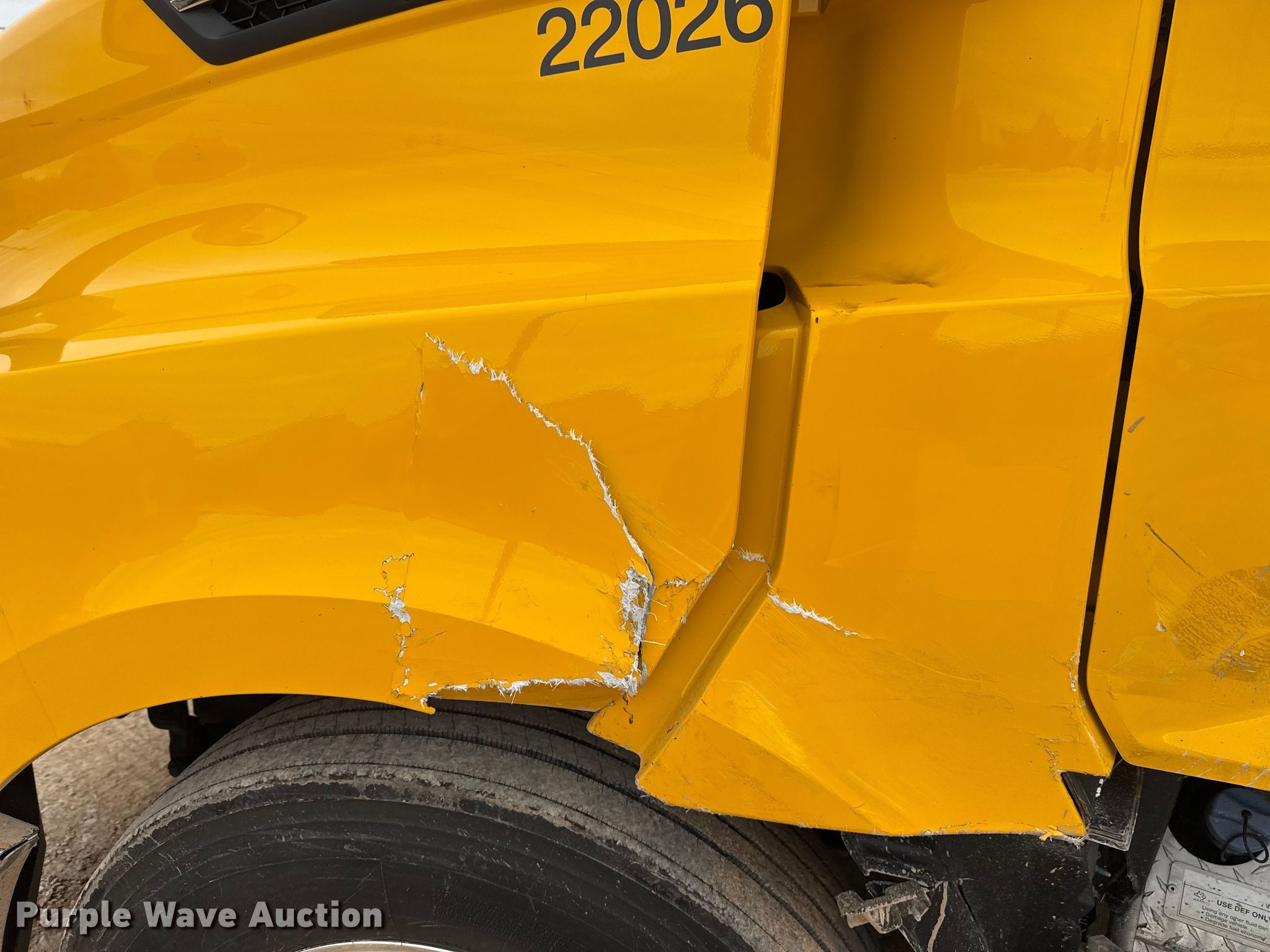 2022 Freightliner Cascadia 126 semi truck. Miles: 566,575 on odometer, Hours: 13,441 on meter, VIN: 3AKJHLDV0NSNC5613, Unit #: 22026. Engine Detroit DD13, Serial: 471928S0893073, Displacement: 12.8L, Cylinders: 6, Fuel type: Diesel, Engine brake. Transmission Automated manual. Chassis Axles: Tandem, Differential lock: Inter-axle, Suspension: Air, Brakes: Air, GVWR: 52,500 lbs FAWR: 12,500 lbs, IAWR: 20,000 lbs, RAWR: 20,000 lbs, Wheelbase: 180". Interior AC, Heat, Heated mirrors, Power windows, Power locks, Cruise control, Air ride cab, Auxiliary controls. Features Deck plate: Aluminum, Fifth wheel type: Fixed, Fuel tank: Single. Tires Front: 295/75R22.5, Rear: 445/50R22.5. Notes DEF tank damaged, Drivers side hood latch missing, Dash warning indicator: Check engine, Windshield chipped or cracked. Oklahoma title. Title distribution may be delayed up to 30 days from verification of funds. Gemini Motor Transport. Oklahoma City, OK 73127