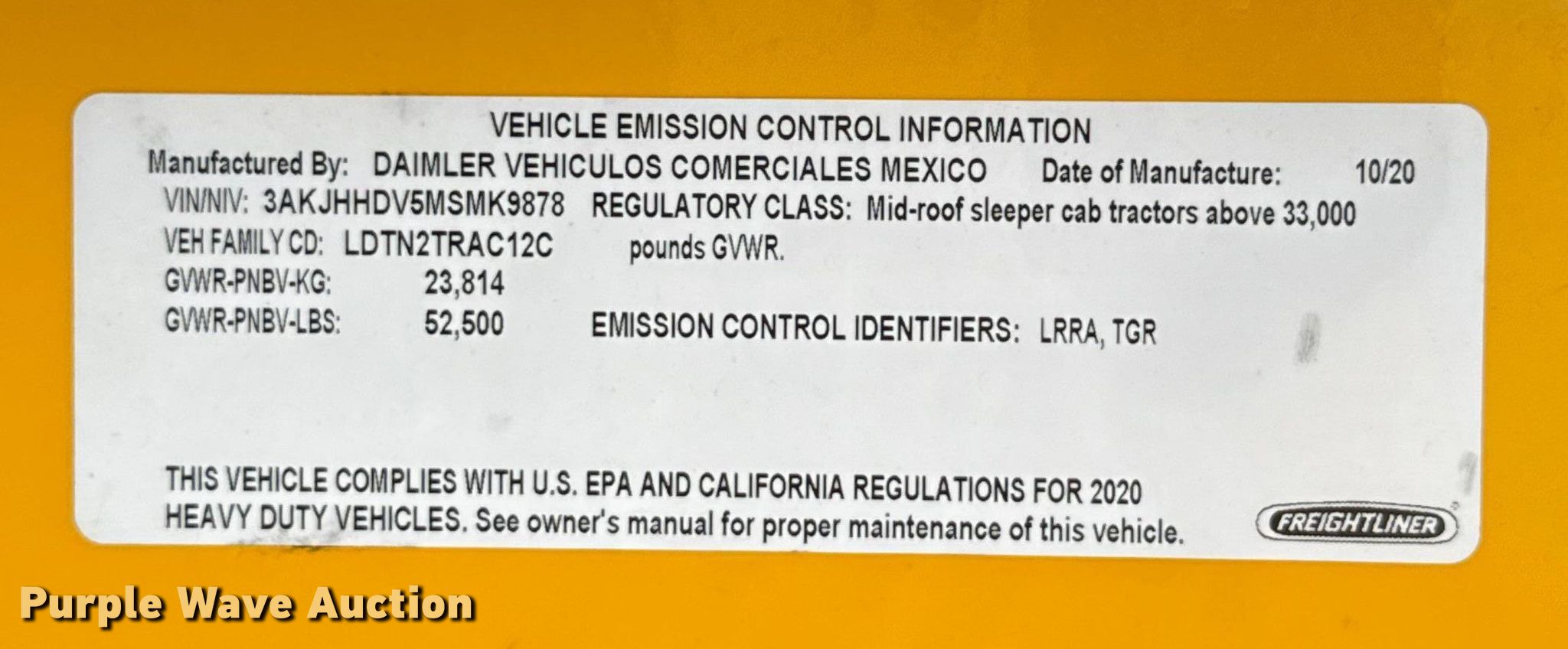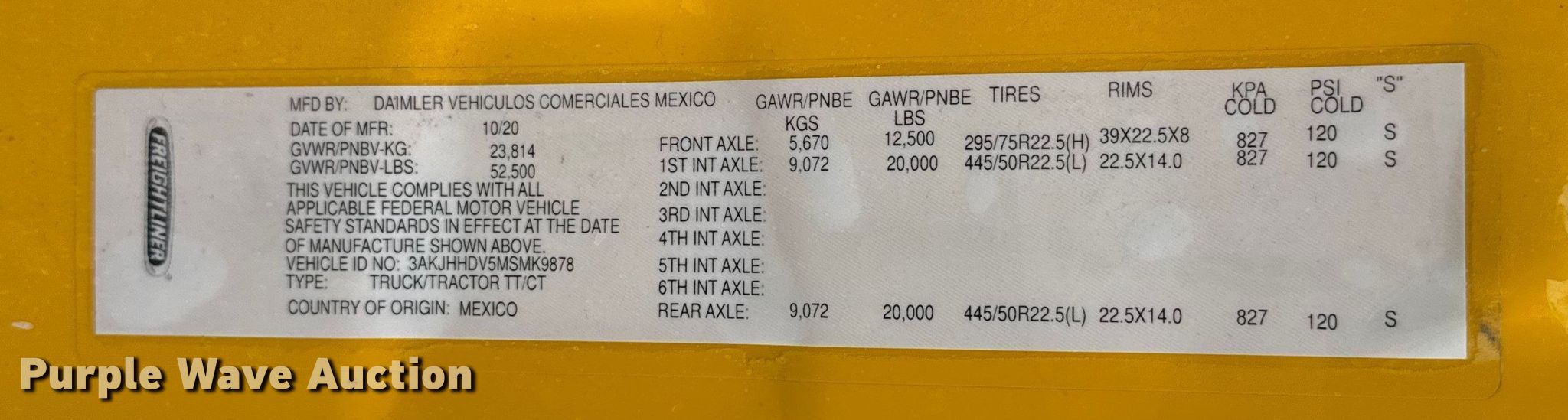 - VIN: 3AKJHHDV5MSMK9878