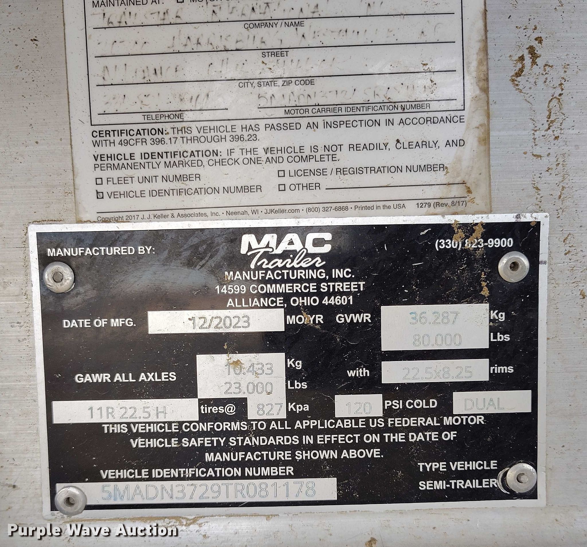 Take a look at this used 2026 Mac end dump trailer being sold on December 31st, 2025 in the Wednesday December 31 Truck and Trailer Auction made by Mac. Take a look at all of the item information below or take a look at similar auctions for Construction Trailers.