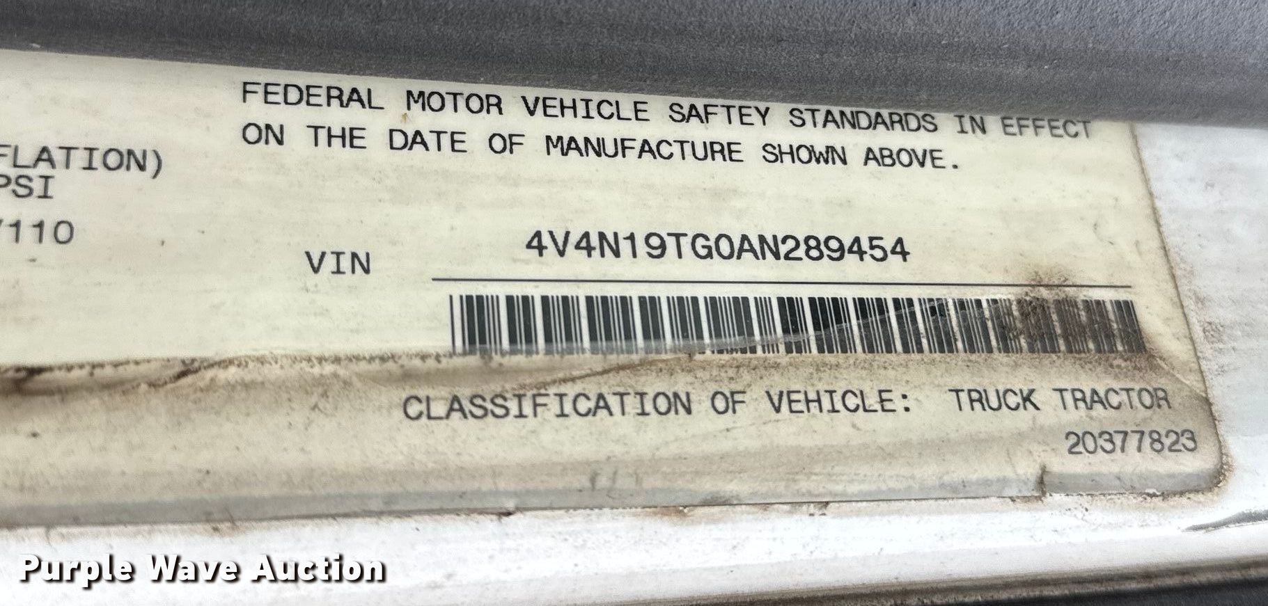 Purple Wave is selling a used Truck Tractor in Kansas. This item is a 2010 Volvo VNL semi truck with the following: Miles: 844,775 on odometer, VIN: 4V4N19TG0AN289454