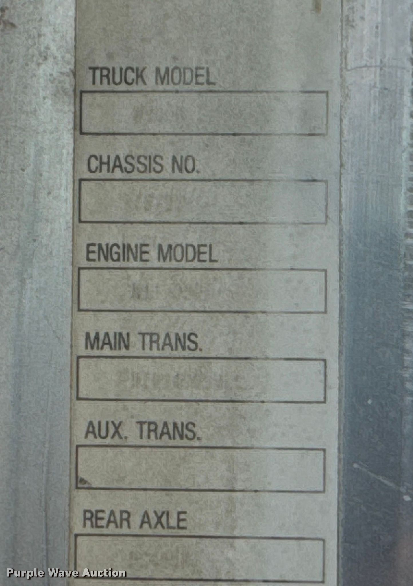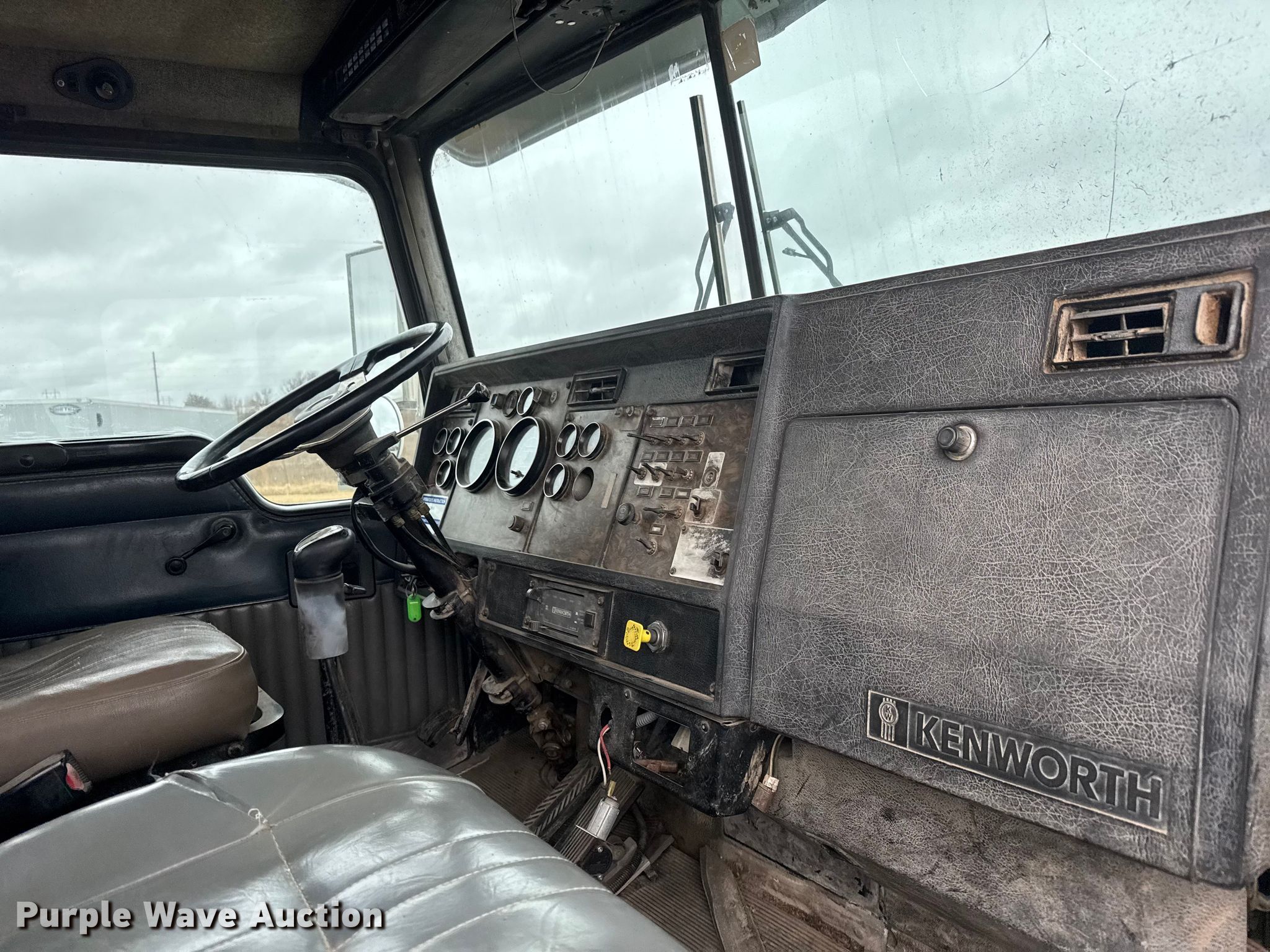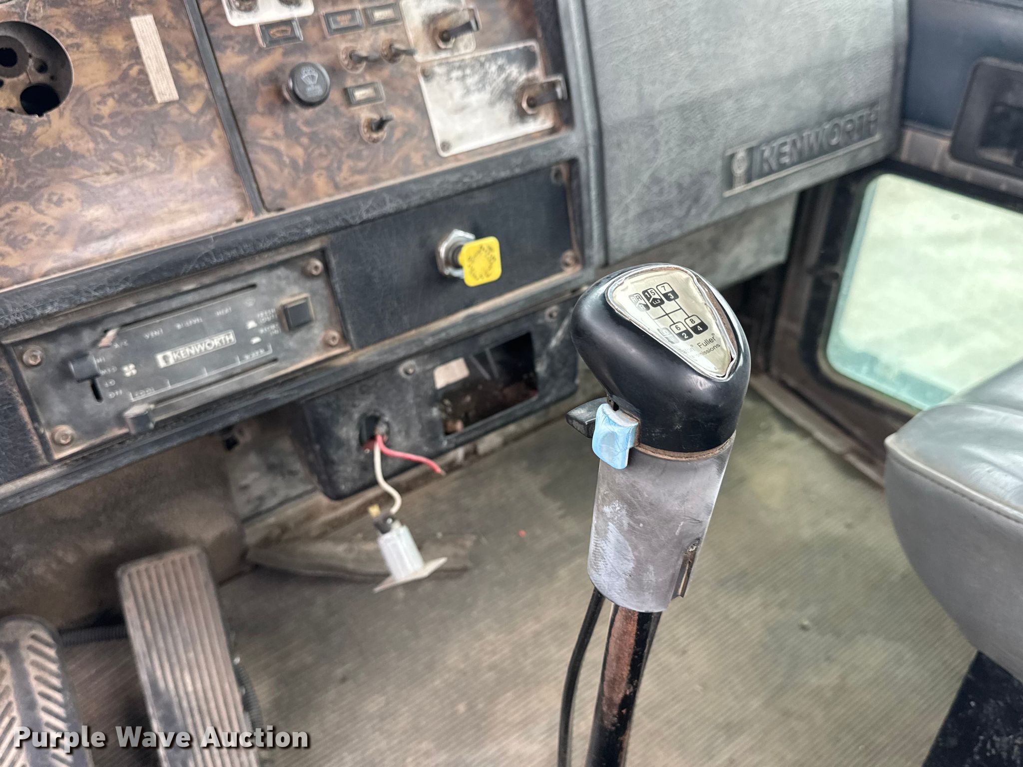 1998 Kenworth W900 truck cab and chassis. Miles: 19,445 on odometer, Hours: 5,988 on meter, VIN: 1NKWL90X1WR767961. Engine Cummins M11-330E+, Serial: 34872170, Displacement: 10.8L, Cylinders: 6, Fuel type: Diesel, HP: 330. Transmission Eaton Fuller 9 Lo Lo, Manual, Speed: 11. Chassis Axles: Tandem, Suspension: Walking beam, Differential lock: Inter-axle, Brakes: Air, Truck chassis: 20' 9". Interior AC, Heat, Heated mirrors, Cruise control. Features Fuel tank: Single. Tires Front: 275/80R22.5, Rear: 11R22.5. Notes Windshield chipped or cracked, Non-operational AC. Kansas title. Title distribution may be delayed up to 14 days from verification of funds. Seeders Inc... Wichita, KS 67215