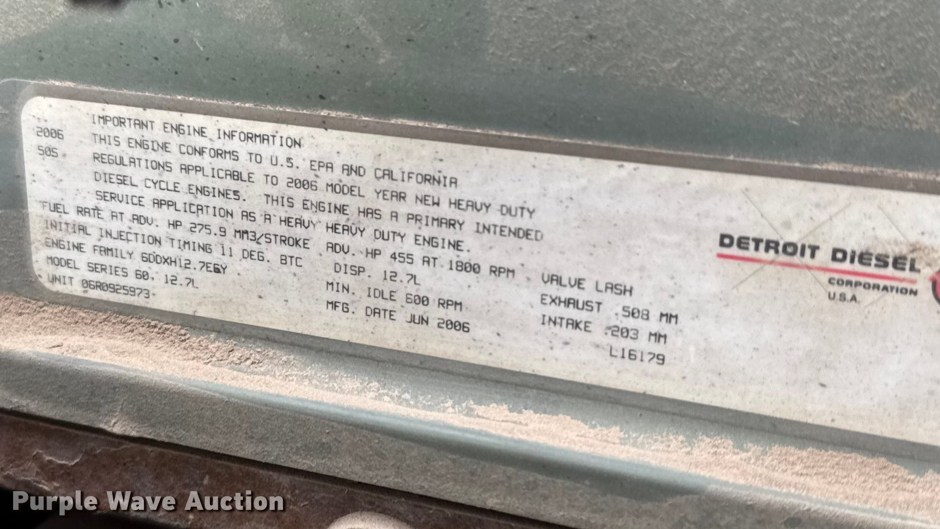 2007 Freightliner Columbia 120 semi truck. Miles: 548,023 on odometer, Hours: 18,326 on meter, VIN: 1FUBA5CG77PW92618. Engine Detroit Diesel Series 60, Serial: 06R0925973, Displacement: 12.7L, Cylinders: 6, Fuel type: Diesel, Engine brake. Transmission Eaton Fuller, Manual, Speed: 10. Chassis Axles: Single, Suspension: Air Dump valves, Brakes: Air. Interior AC, Heat, Heated mirrors, Cruise control, Air ride cab, Brake controller. Features Fifth wheel type: Fixed, Fuel tank: Dual. Tires Size: 11R22.5. Notes Windshield chipped or cracked. Kansas title. Title distribution may be delayed up to 14 days from verification of funds. Seeders Inc... Wichita, KS 67215