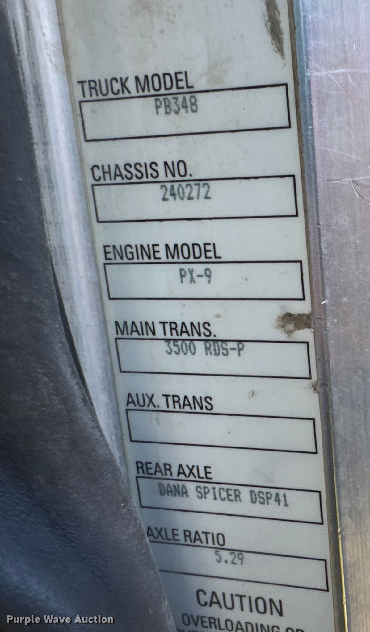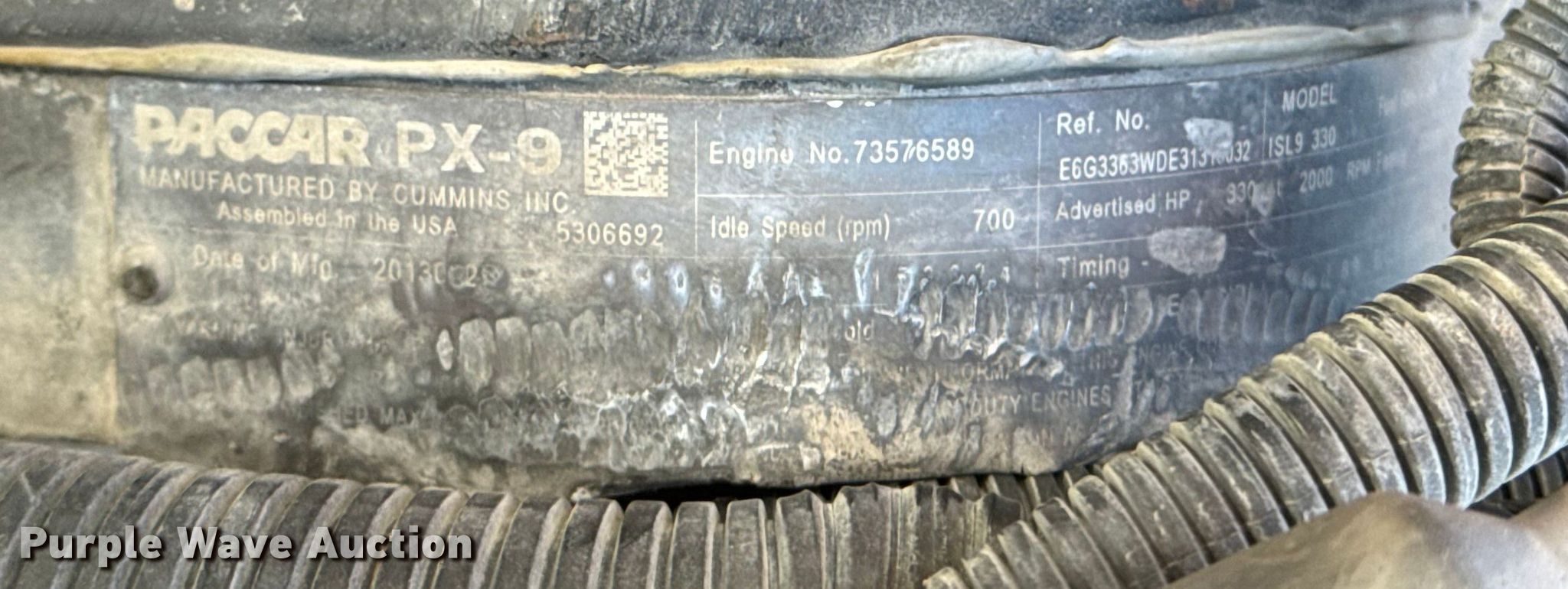 2014 Peterbilt 348 rollback truck. Miles: 357,034 on odometer, Hours: 13,699 on meter, VIN: 2NP3LJ9X7EM240272. Engine Paccar PX-9 ISL9 330, Serial: 73576589, Displacement: 8.9L, Cylinders: 6, Fuel type: Diesel. Transmission Allison, Automatic. Chassis Axles: Tandem, Suspension: Air, Brakes: Air, PTO, GVWR: 54,600 lbs. Interior AC, Heat, Heated mirrors, Power windows, Power locks, Cruise control. Features Bed Rollback bed, Ledwell, Length: 28', Width: 102", Ram: Dual, Winch. Tires Front: 315/80R22.5, Rear: 11R22.5. Notes Chains and binders not included, Toolbox contents not included, (4) additional tires included, Dash warning indicator: Check engine, Water in Fuel, Water/fuel separator sensor issues. Kansas title. Title distribution may be delayed up to 30 days from verification of funds. Lift Parts Service L.L.C.. Wichita, KS 67215