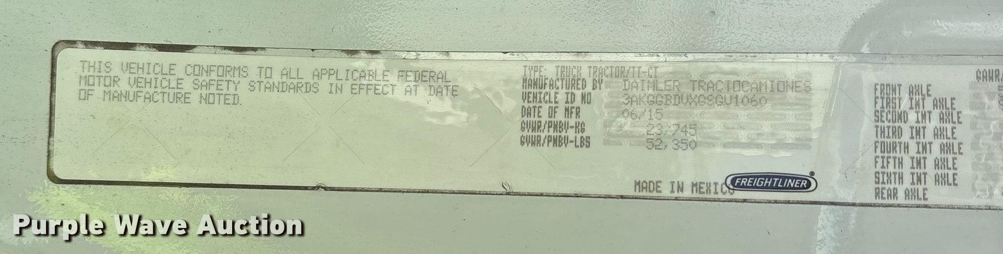 Purple Wave is selling a used Truck Tractor in North Carolina. This item is a 2016 Freightliner Cascadia semi truck with the following: Miles: 539,324 on odometer, VIN: 3AKGGBDVXGSGV1060, Unit #: 69467335