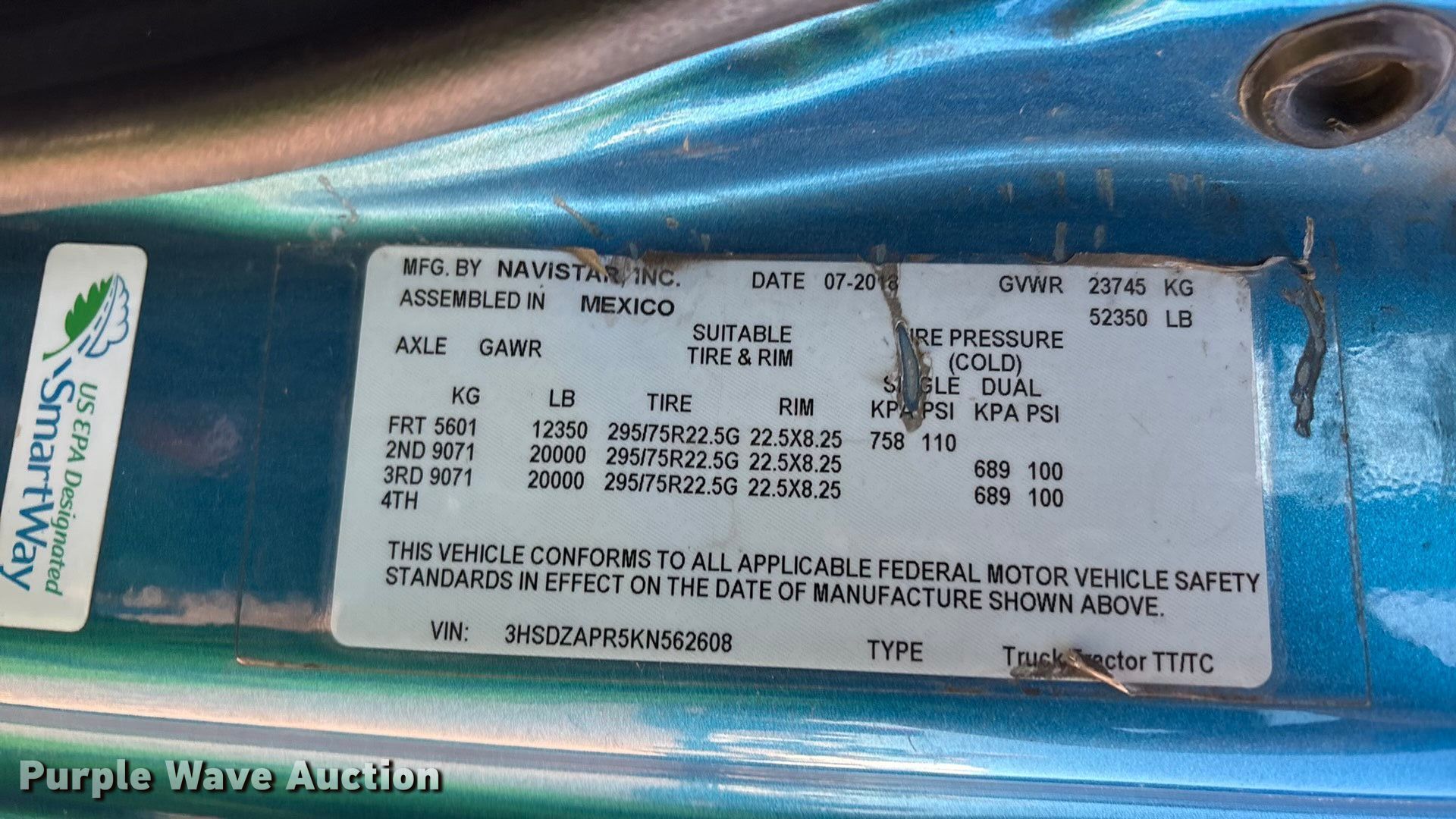- VIN: 3HSDZAPR5KN562608
