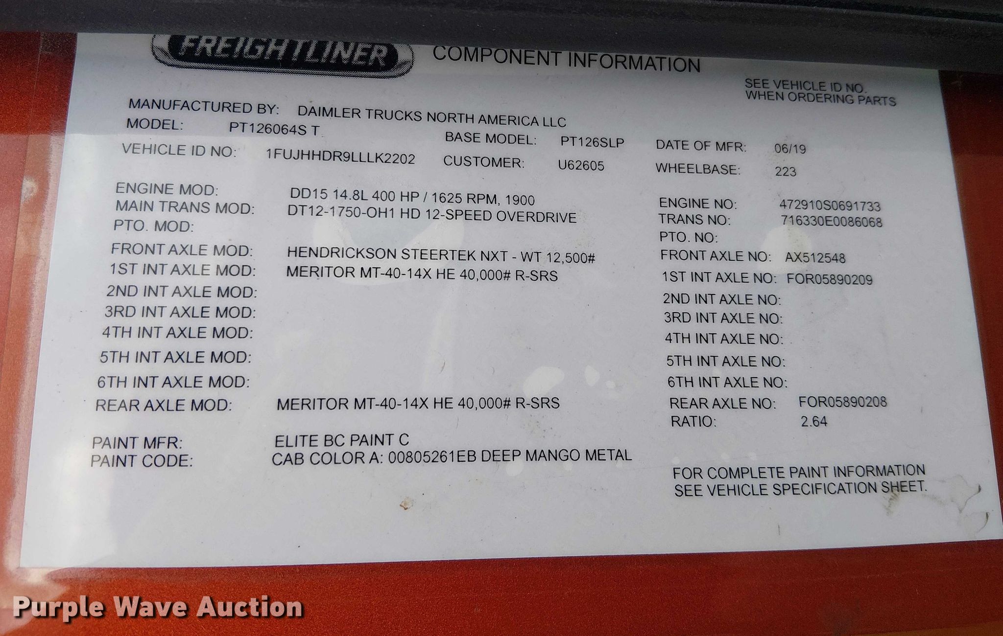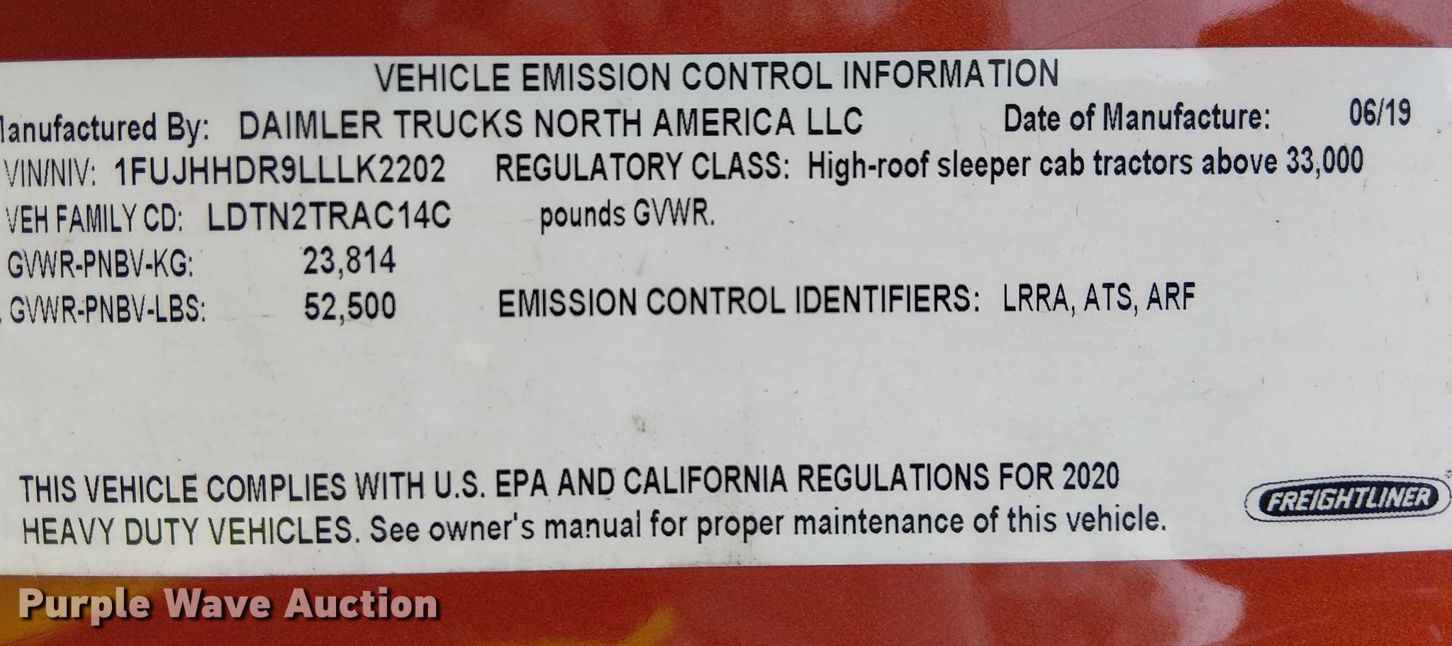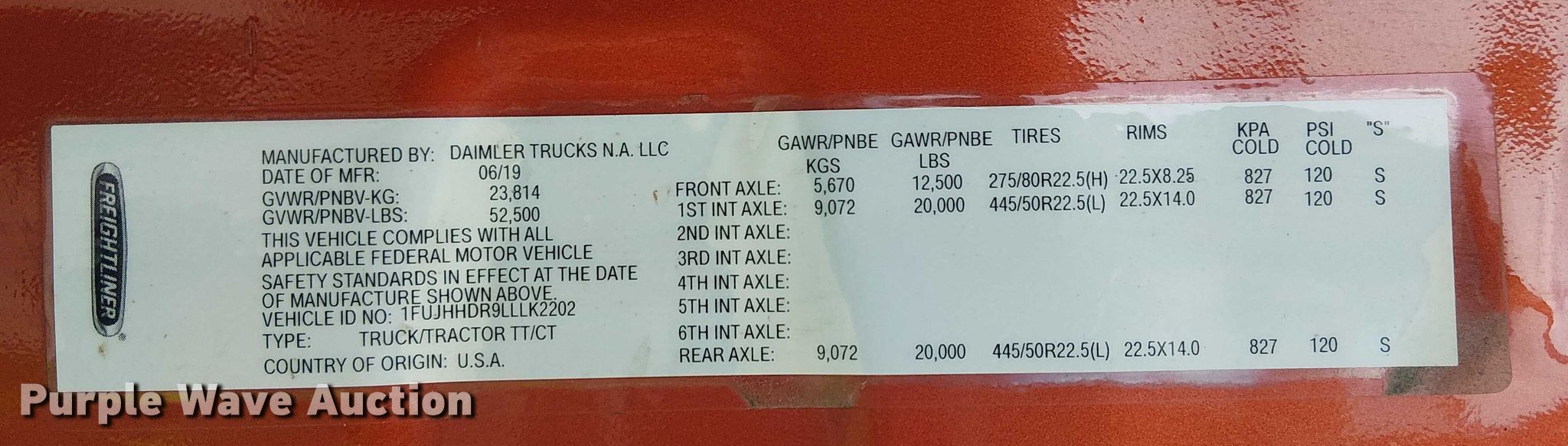 - VIN: 1FUJHHDR9LLLK2202