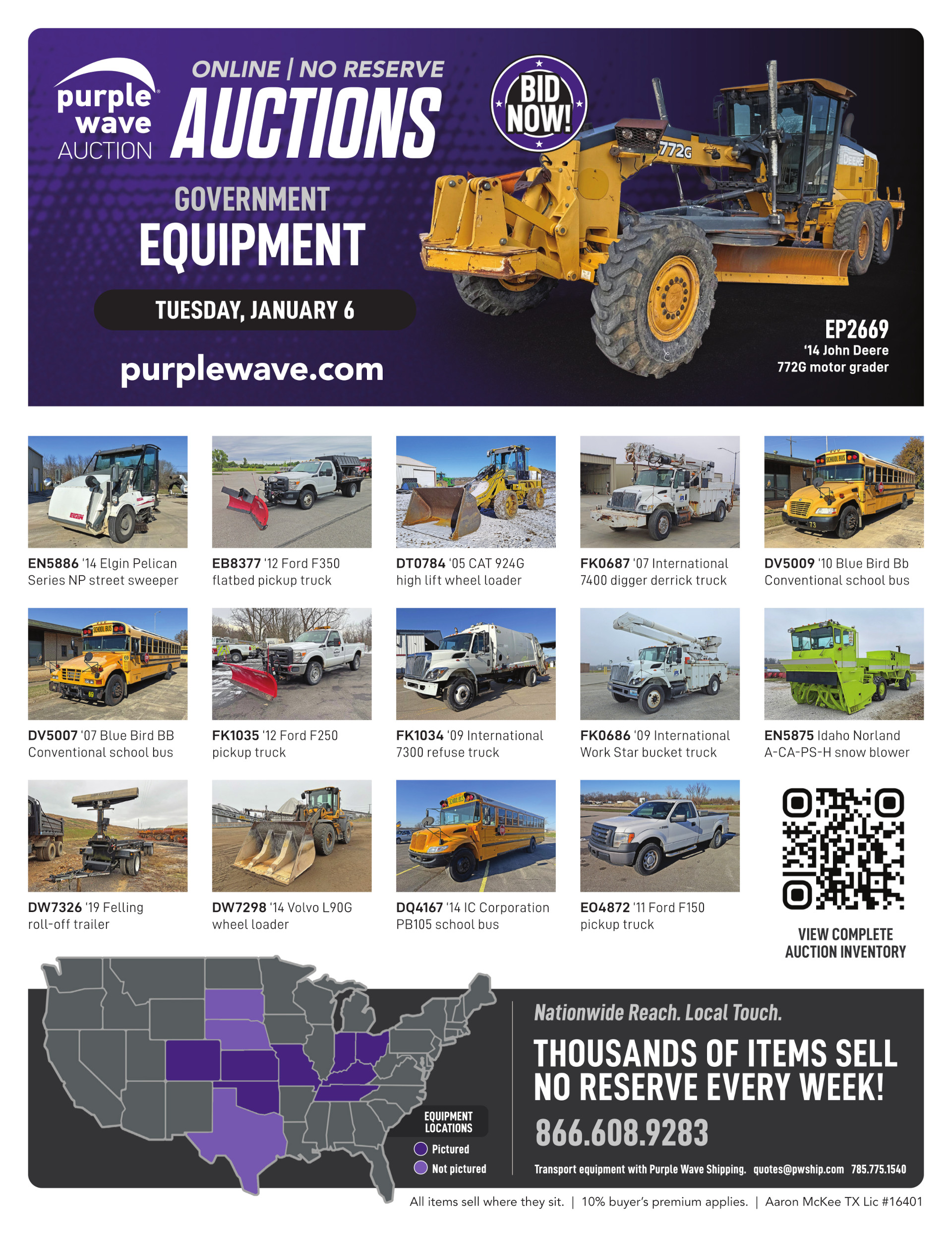 This auction is conducted by Purple Wave, Inc., whose home office is 825 Levee Drive, Manhattan, Kansas. Aaron McKee, Texas auctioneer license # 16401, operates Purple Wave, Inc. Complaints against us may be directed to the Texas Department of Licensing and Regulation, P.O. Box 12157, Austin, Texas 78711, (512) 463-6599. For additional required information, see the attached document.