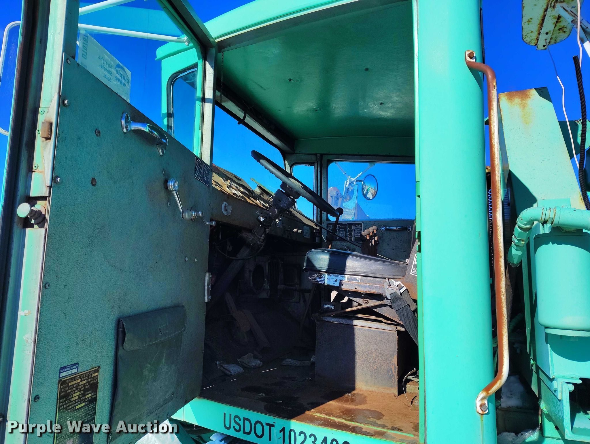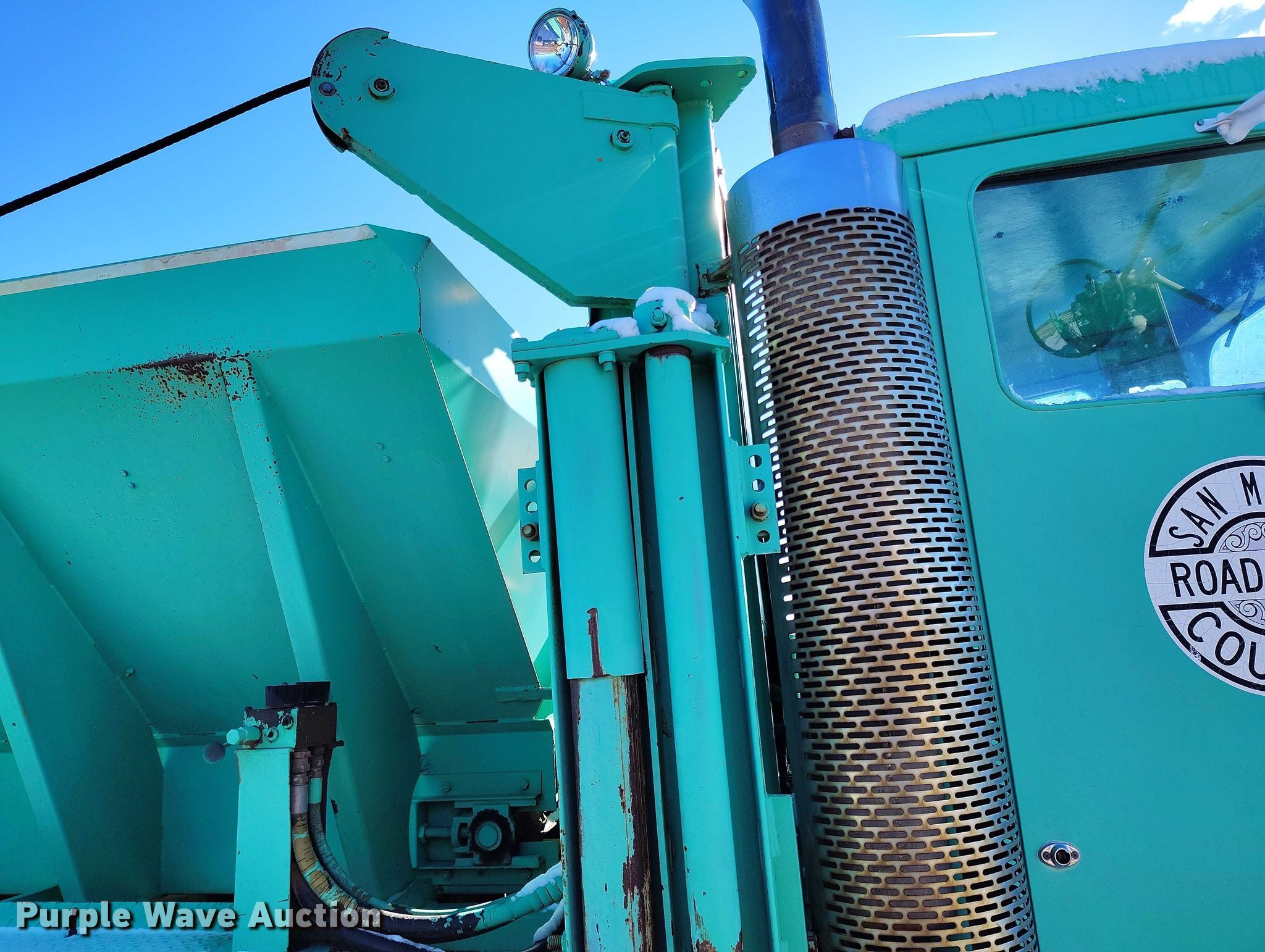 1974 Oshkosh P2025-1E1 dump / spreader truck. Miles: 162,903 on odometer, VIN: 13996. Engine Caterpillar, Cylinders: 6, Fuel type: Diesel. Transmission Oshkosh, Manual, Speed: 14. Chassis Axles: Single, Suspension: Spring, Brakes: Air, PTO, GVWR: 42,000 lbs FAWR: 20,000 lbs, RAWR: 23,000 lbs. Interior Heat. Features Bed Length: 11' 6", Width: 101", Bed type: Steel, Plow Width: 144", Wing plow Width: 132". Tires Size: 225/65R22.5. Notes Parts may be missing , Unit must be towed or hauled , Non-operational unit. Colorado title. Mileage has not been verified. Exempt will be written in the odometer disclosure on the title. Title distribution may be delayed up to 30 days from verification of funds. San Miguel County. Egnar, CO 81325