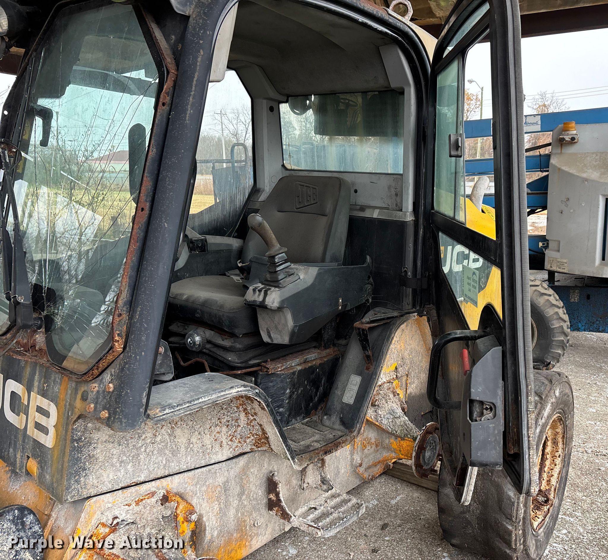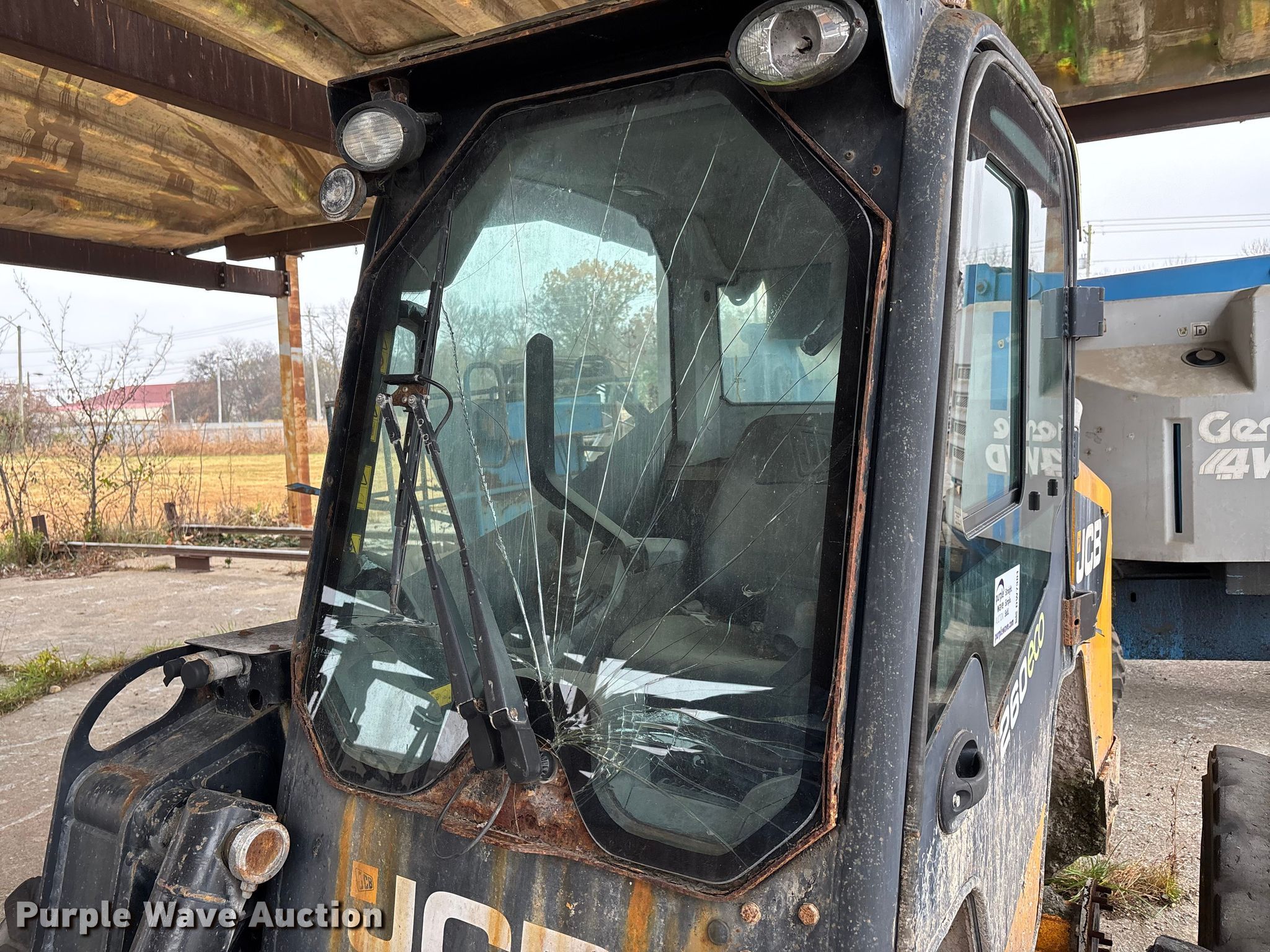 2011 JCB 260 skid steer loader. Hours: Unknown. Engine Serial: SD320/40133U1546911, Fuel type: Diesel, kW: 63. Transmission Hydrostatic. Operators station Enclosed cab, Heat, Bucket control: Hand. Features Auxiliary hydraulics, Quick coupler: Manual, Bucket Width: 72", Cutting edge: Bolt-on. Tires Size: 12-16.5. Notes Glass cracked, Non-operational ECM, Non-operational unit. Paducah-McCracken County Riverport Authority. Paducah, KY 42002