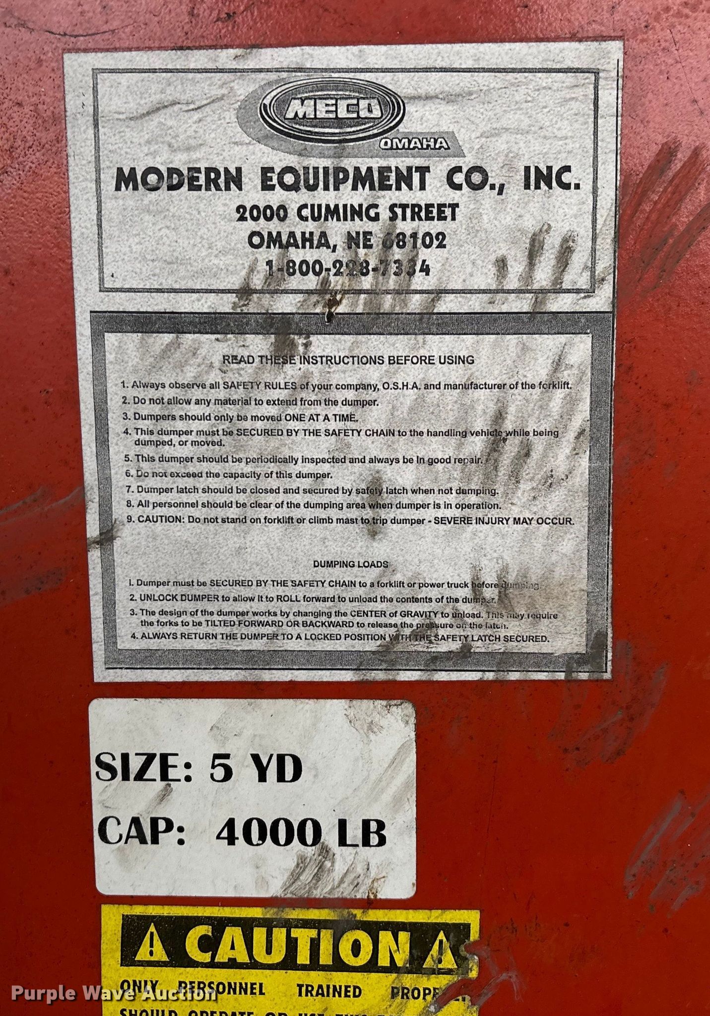 Purple Wave is selling a used Refuse or Compaction Equip. in Kentucky. This item is a Meco self-dumping hopper with the following: Overall, Length: 8', Width: 5' 10", Height: 4' 5"