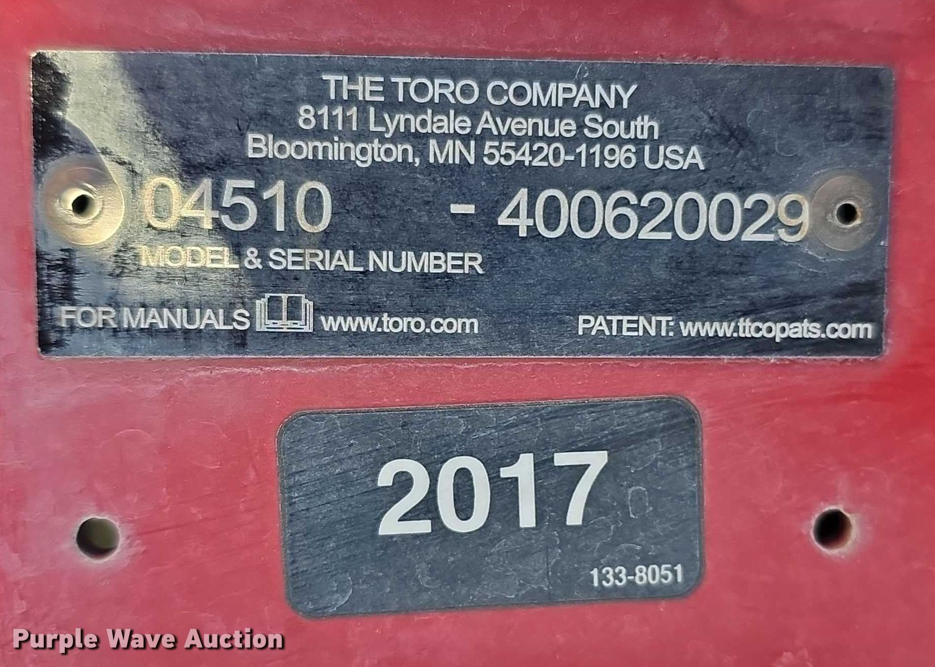 Purple Wave is selling a used Commercial Turf Mower in Kansas. This item is a 2017 Toro GreensMaster 3300 Triflex reel mower with the following: Hours: 2,547 on meter, Cutting width: 60", Serial: 400620029