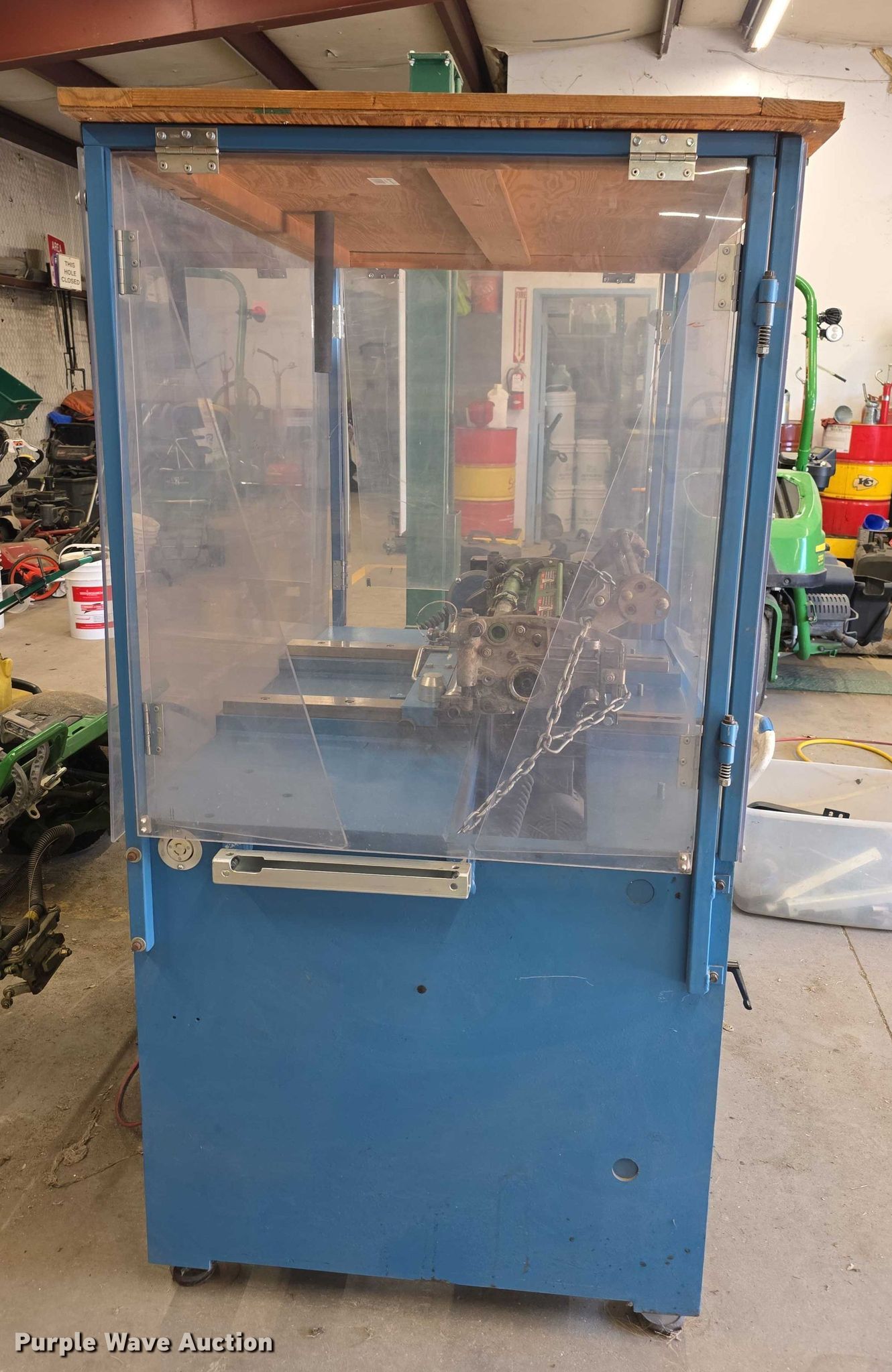 Purple Wave is selling a used Tools in Kansas. This item is a 2008 Peerless 3000 reel grinder with the following: Cage, 46" L x 64" W x 69" H, Air and electric operated, Reel not included