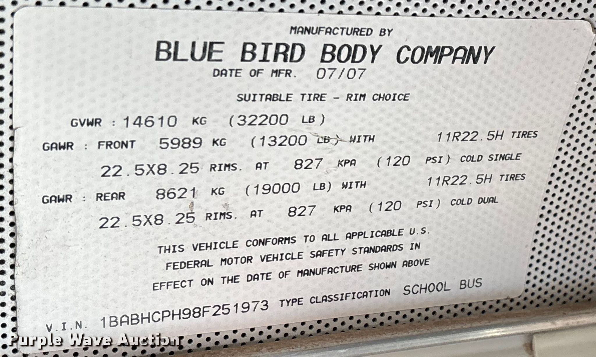 Take a look at this used 2008 Blue Bird All American school bus being sold on January 6th, 2026 in the Tuesday January 06 Government Auction made by Blue Bird. Take a look at all of the item information below or take a look at similar auctions for Transit Vehicles.